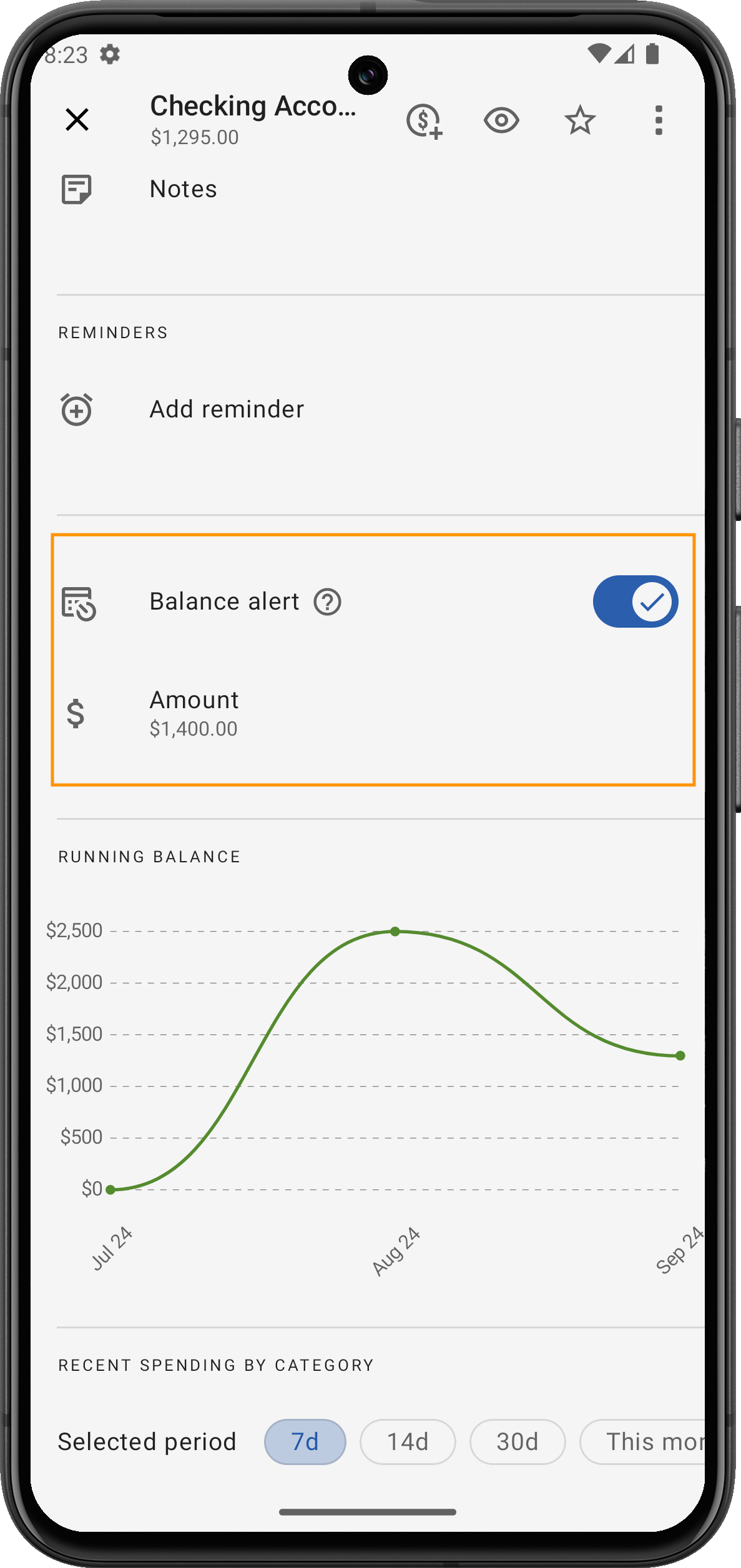 Wie es funktioniert: Lege einen bestimmten Kontostand fest, den du nicht unterschreiten möchtest. Wenn dein Kontostand sich diesem Betrag nähert oder darunter fällt, sendet dir die App eine Benachrichtigung und hält dich über deine finanzielle Situation auf dem Laufenden.