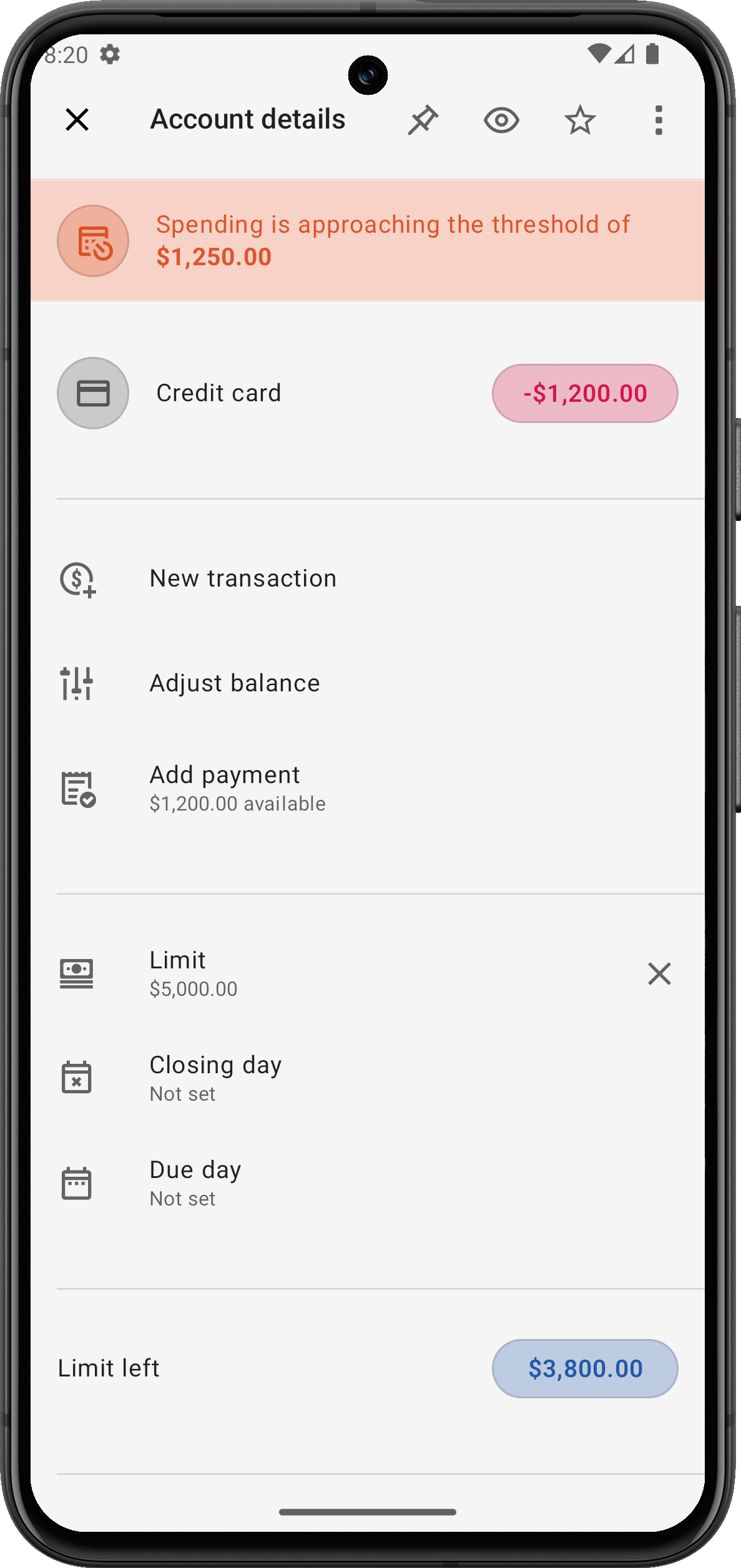 Ausgabenwarnungen für Kreditkartenkonten