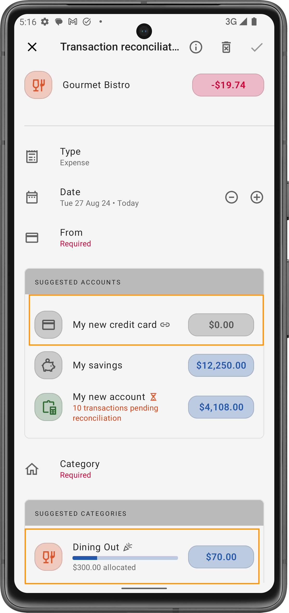 KI-gestützte Verarbeitung: Mithilfe modernster KI extrahiert die App Transaktionsinformationen wie Betrag, Händler und Datum. Sie schlägt auch automatisch relevante Kategorien und Konten basierend auf den Transaktionsdetails vor.