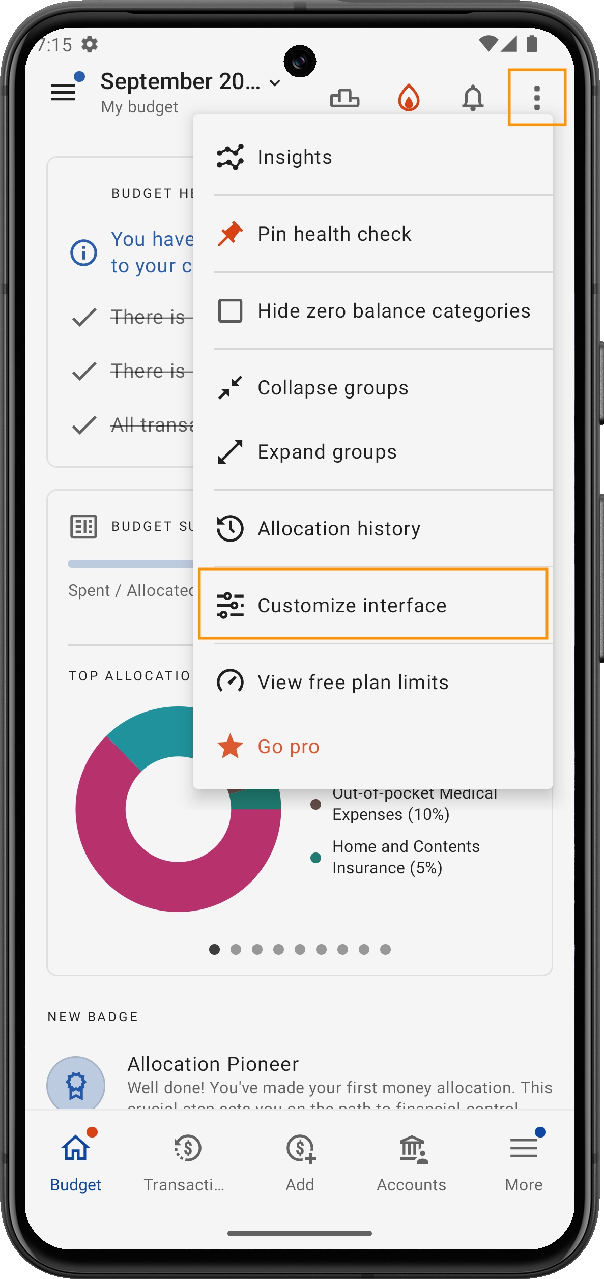 Budgetübersicht anzeigen: Zeigt einen Überblick über Ihre aktuelle Budgetaufteilung.