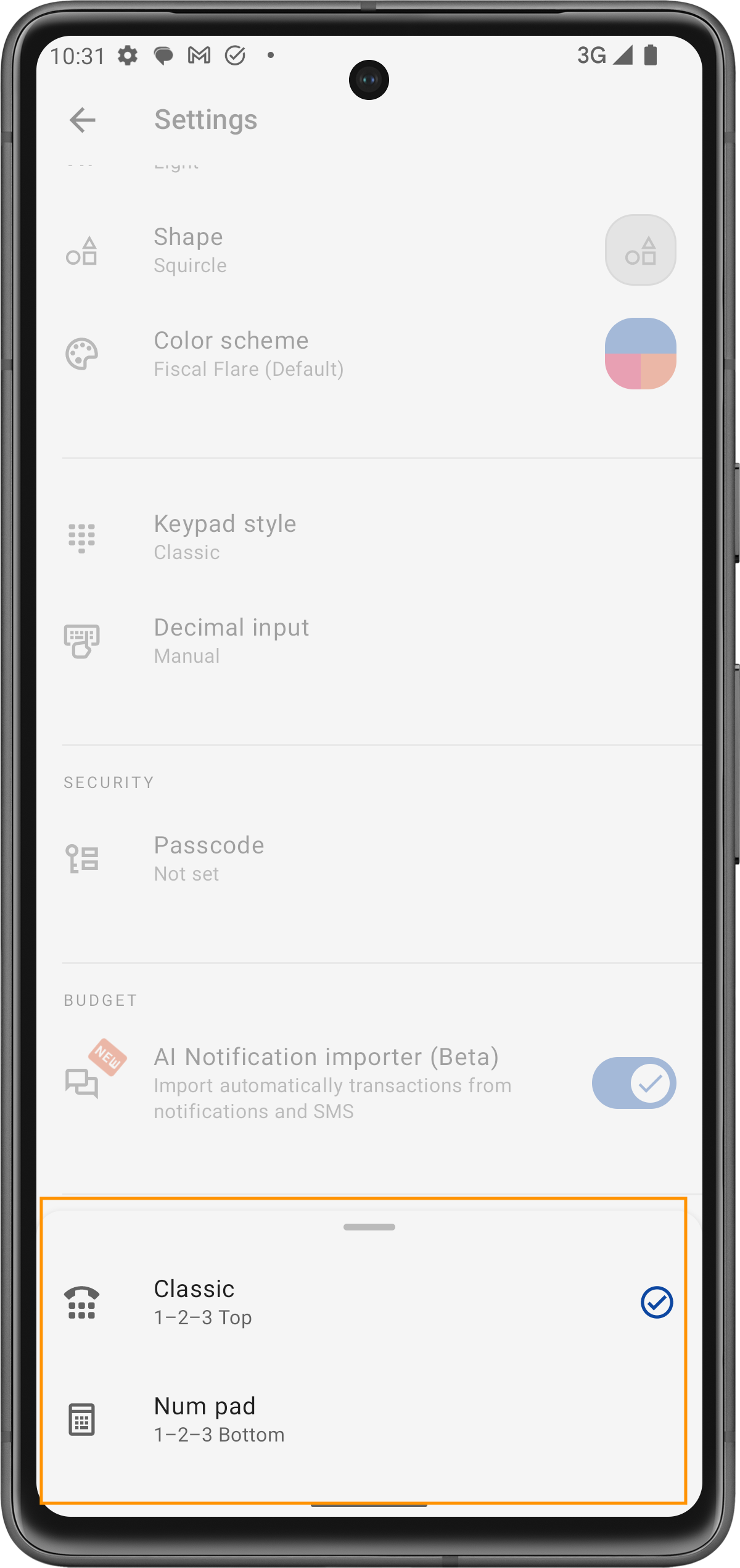 Die App bietet verschiedene Optionen zur Anpassung des Zahlenblocks, um deine Vorlieben bei der Eingabe von Beträgen zu berücksichtigen. Du kannst zwischen verschiedenen Layouts und Methoden für die Dezimaleingabe wählen, um die Dateneingabe intuitiver und an deine Gewohnheiten angepasst zu gestalten.
