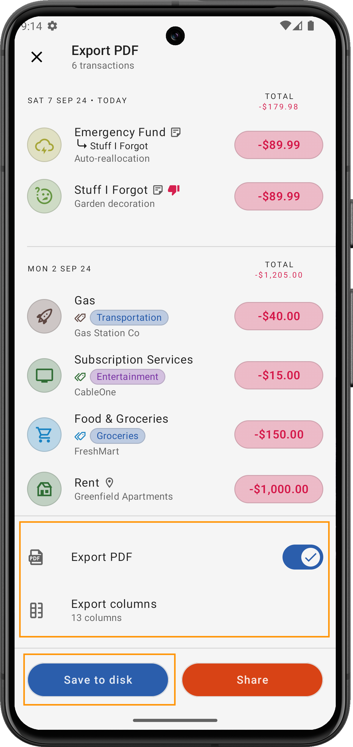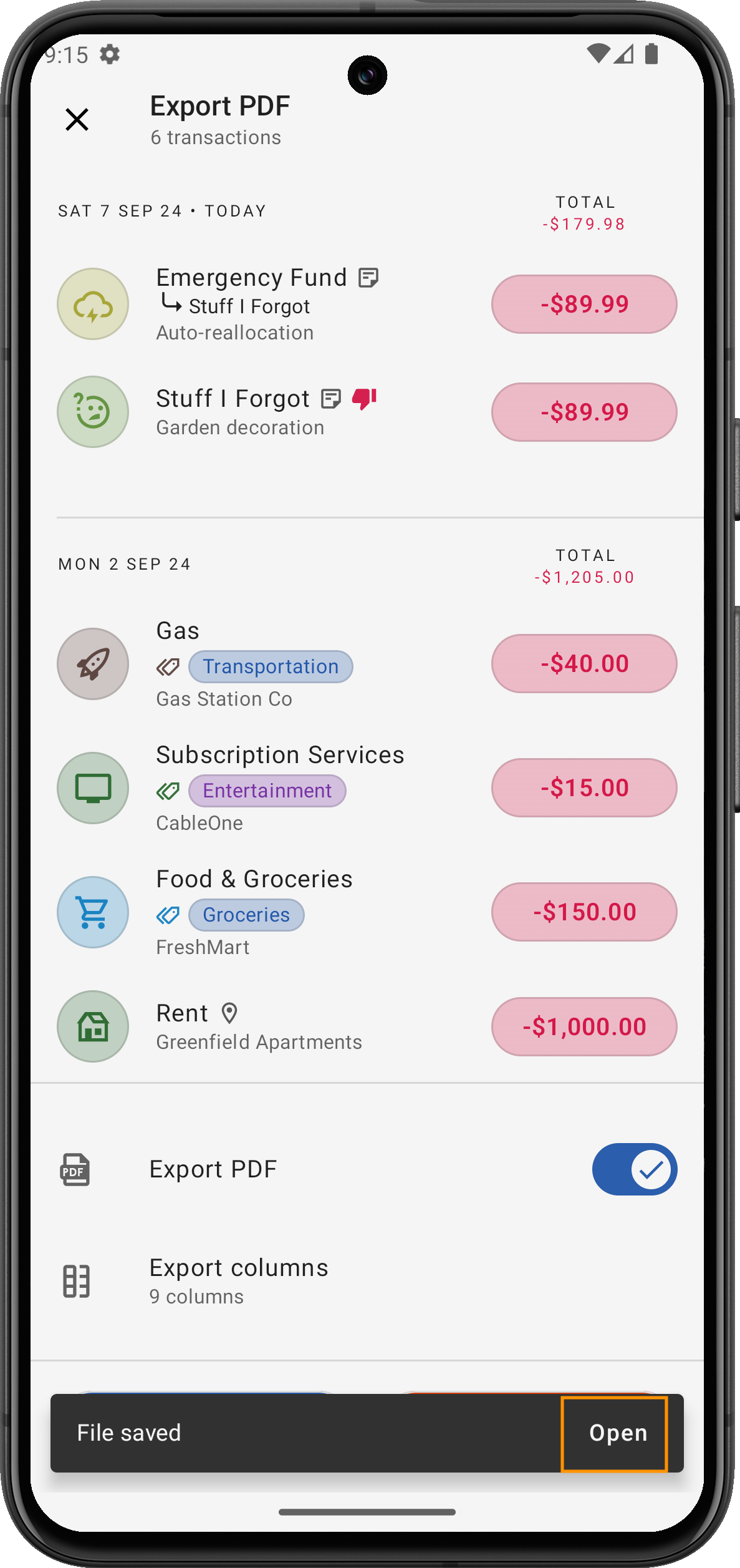 Diese leistungsstarke Exportfunktion hilft Ihnen, Ihre Finanzen effektiver zu verwalten, indem Sie jederzeit und auf jede Weise einfachen Zugriff auf Ihre Transaktionsdaten haben!