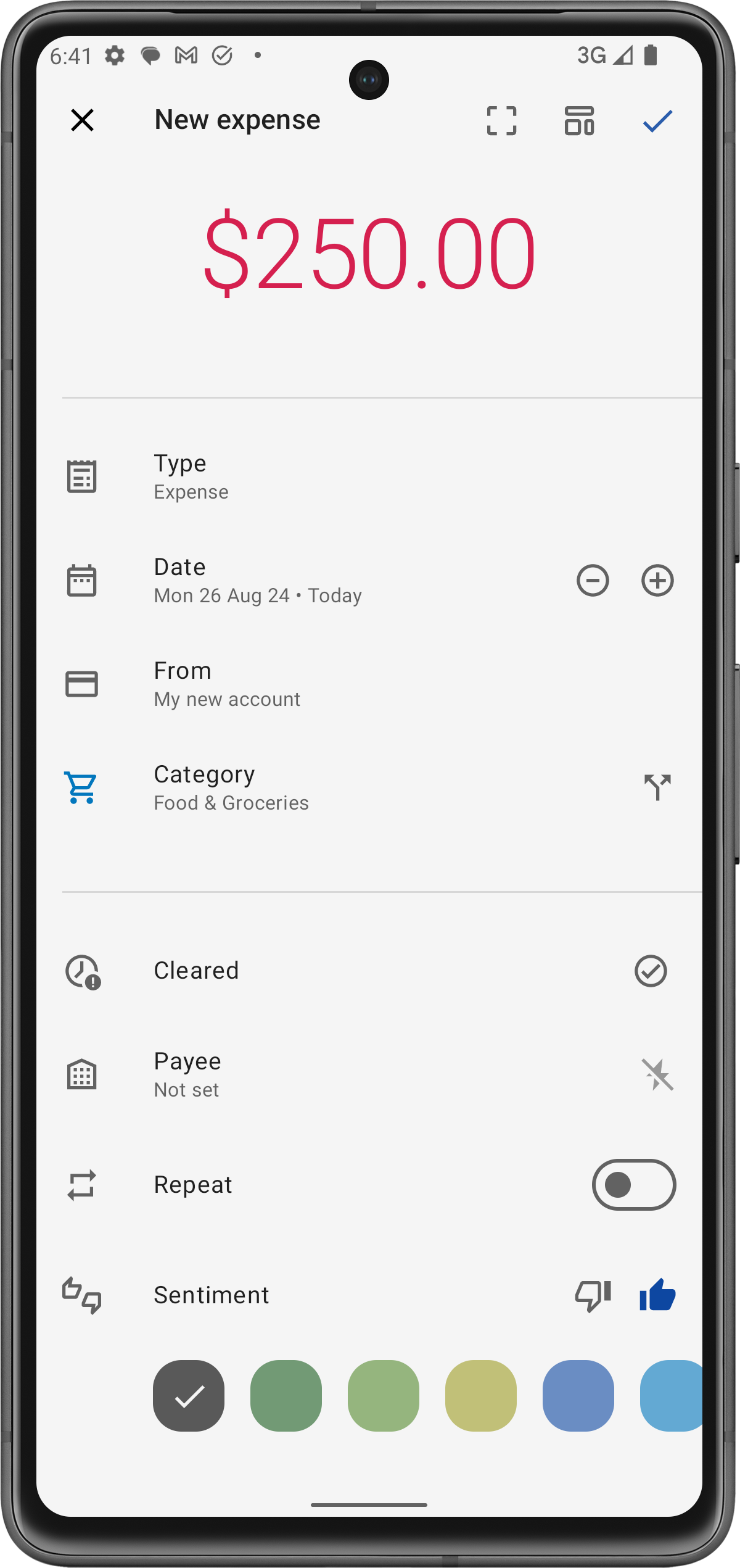 Kategorie: Ordne die Ausgabe einer relevanten Kategorie zu (z.B. Lebensmittel, Nebenkosten, Unterhaltung), um sicherzustellen, dass deine Ausgaben korrekt innerhalb deines Budgets nachverfolgt werden.