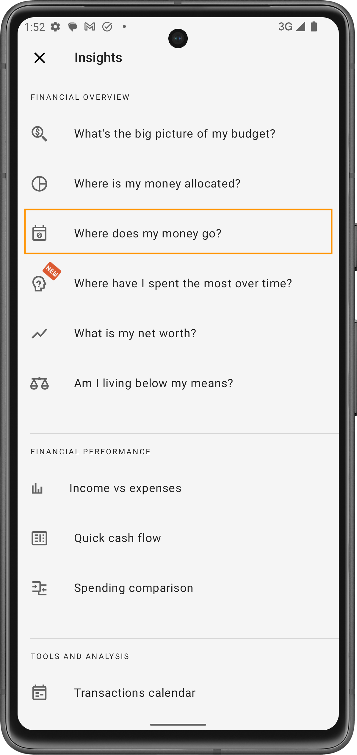 Otra visión esencial que ofrece la aplicación es la pantalla "¿A Dónde Va Mi Dinero?", que te ayuda a rastrear tus gastos en diferentes categorías.