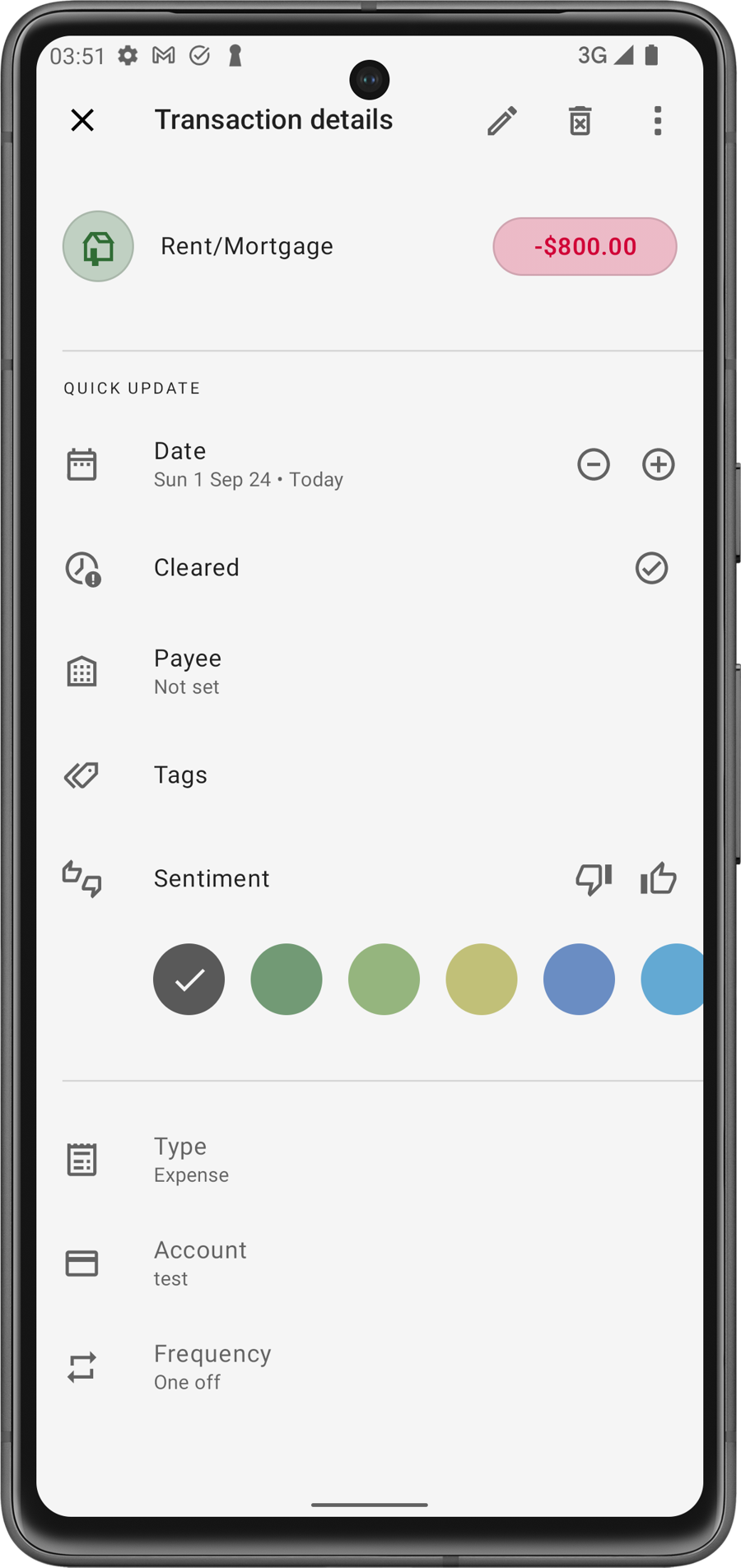 Cuando esta opción está activada, la app omitirá la vista de resumen y abrirá directamente el modo de edición de transacciones por defecto. Esto es útil para los usuarios que desean hacer cambios rápidos en sus transacciones sin navegar por pantallas adicionales.