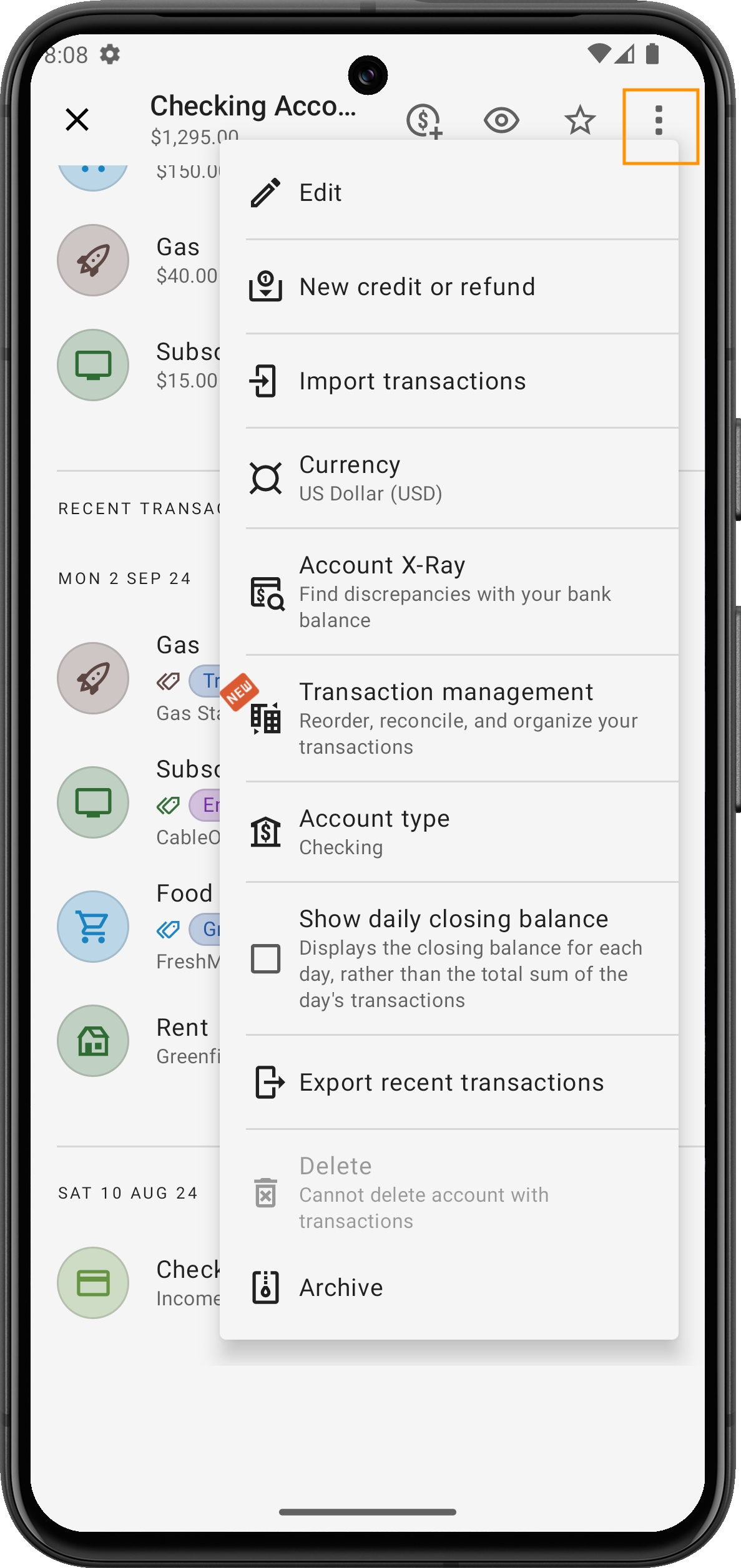 Rayon X du compte : Vérifiez votre compte pour détecter les écarts entre le solde de l'application et celui de votre banque, garantissant ainsi l'exactitude.