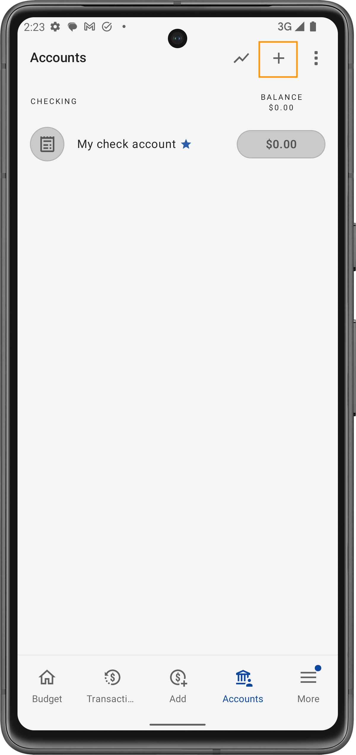 Accédez à l'onglet Comptes : Appuyez sur "Ajouter un nouveau compte" en haut à droite.