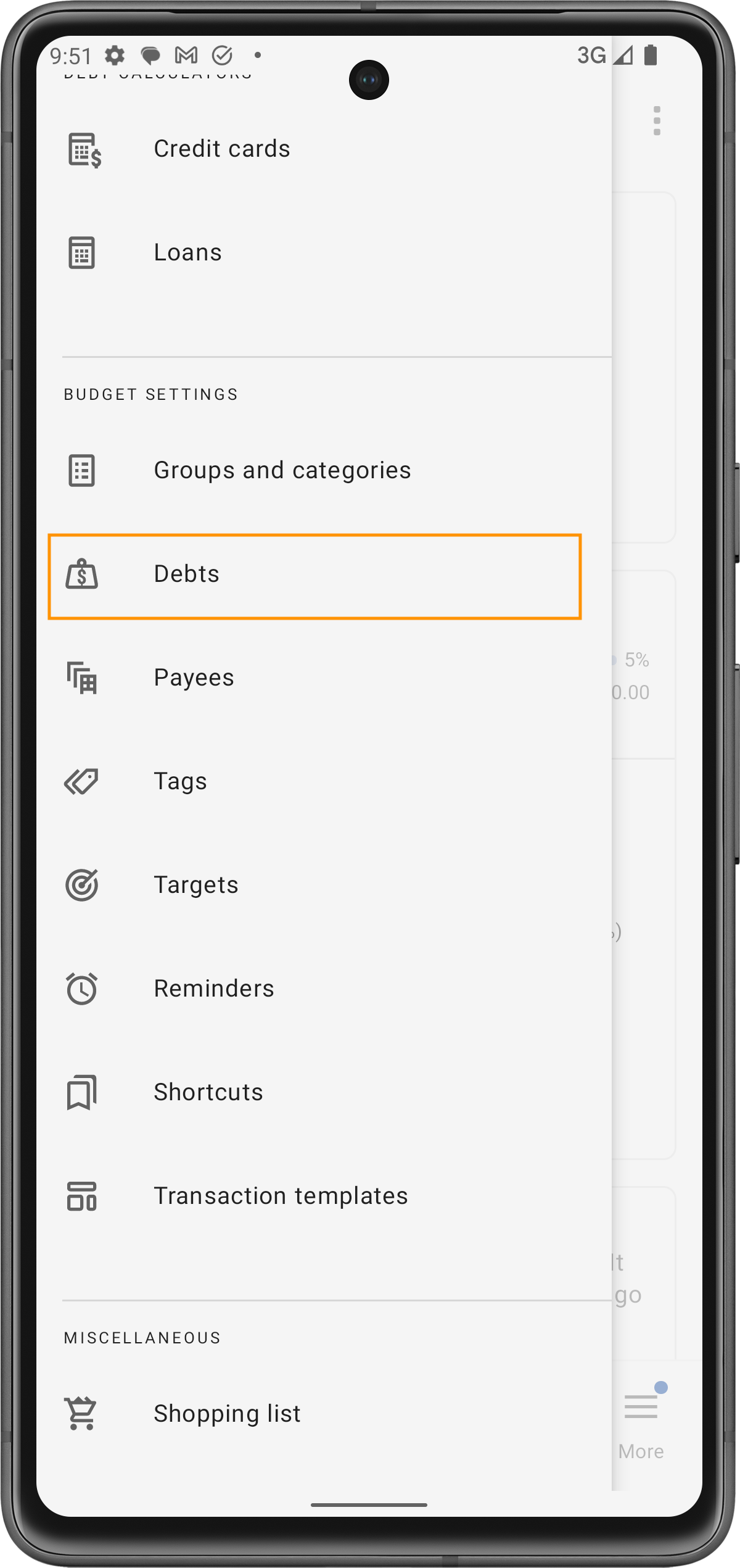 Ouvrez l'entrée de dette spécifique dans votre liste des 'Dettes' pour voir les informations détaillées et effectuer des ajustements.