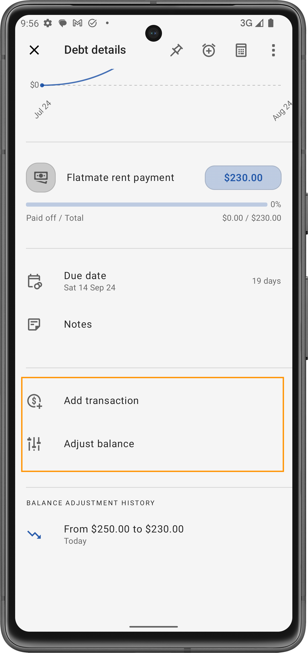 Utilisez la fonction 'Ajuster le solde' pour mettre à jour manuellement le solde de la dette. Cela est utile pour enregistrer les paiements effectués ou les ajustements si des fonds supplémentaires sont empruntés ou prêtés.