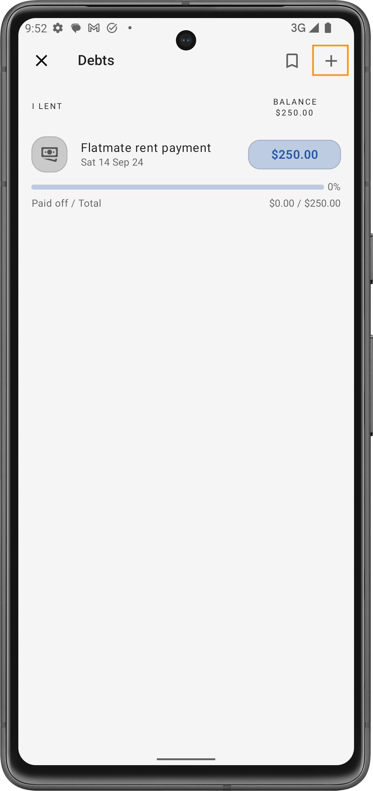Allez dans l'option 'Nouvelle dette' dans l'application.