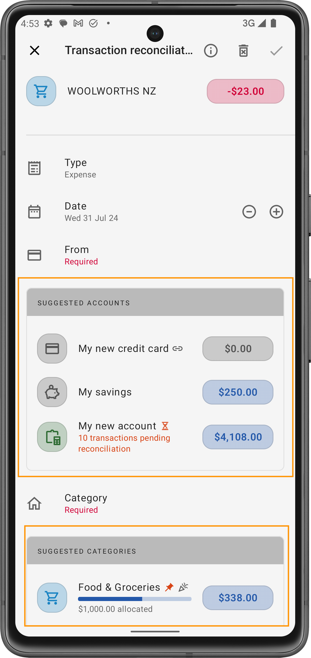 L'application attribue intelligemment des catégories en fonction des habitudes de dépenses passées ou du secteur du commerçant. Cela signifie que si vous faites régulièrement des achats dans un certain magasin, l'application commencera à remplir automatiquement les catégories.