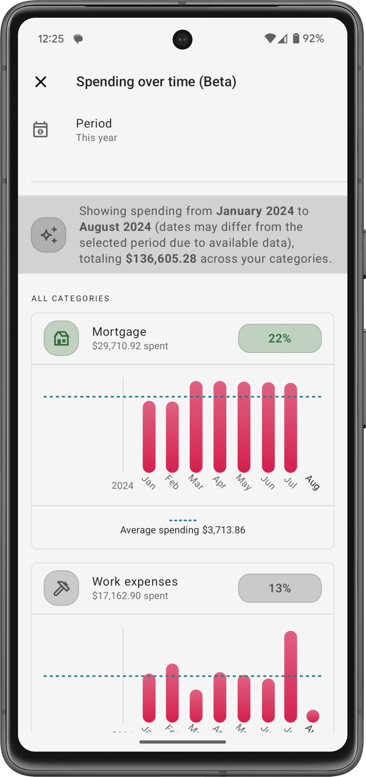Aperçus mensuels : En cliquant sur n'importe quelle barre du graphique des dépenses, vous pouvez accéder à des informations supplémentaires pour ce mois. Ces informations incluent :
