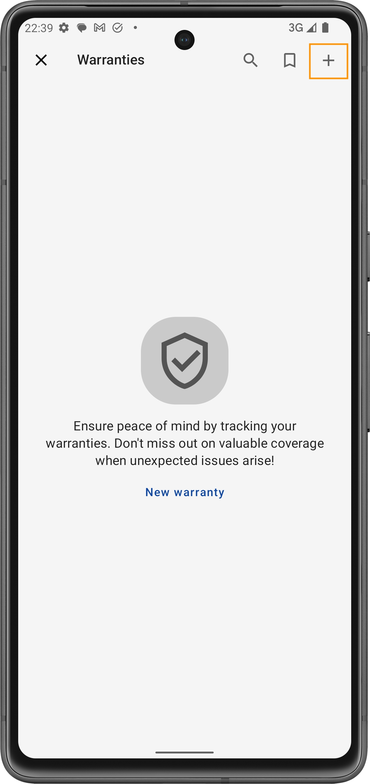 Appuyez sur l'icône + en haut à droite de l'écran des Garanties.