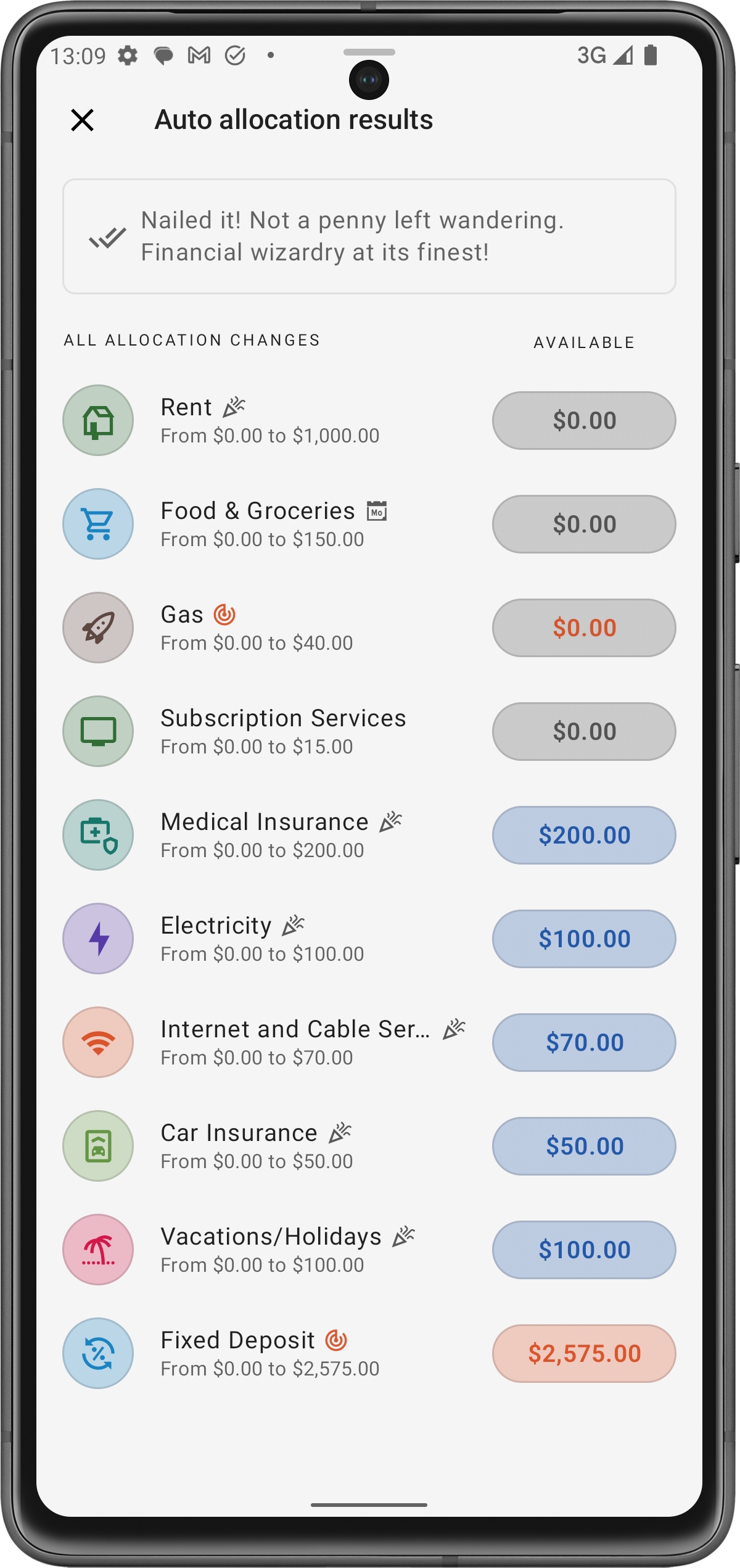 La fonctionnalité Auto Allocation est conçue pour rendre la gestion de votre budget facile en répartissant automatiquement vos fonds disponibles entre différentes catégories. Cela vous fait gagner du temps et vous aide à atteindre vos objectifs financiers de manière cohérente. Voici un guide étape par étape pour utiliser et personnaliser l'Auto Allocation en fonction de vos besoins.