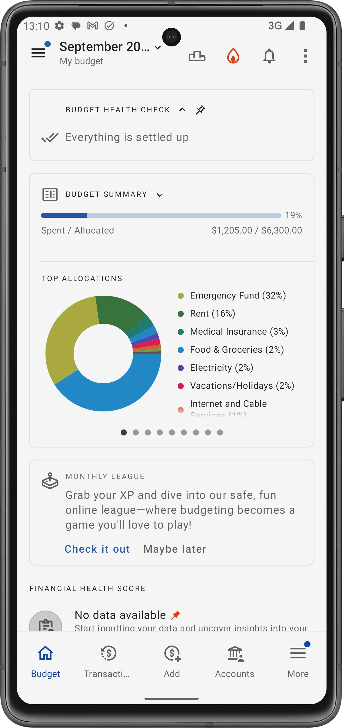 Accéder à l'écran du budget : Depuis le tableau de bord principal, appuyez sur l'onglet Budget en bas de l'écran.