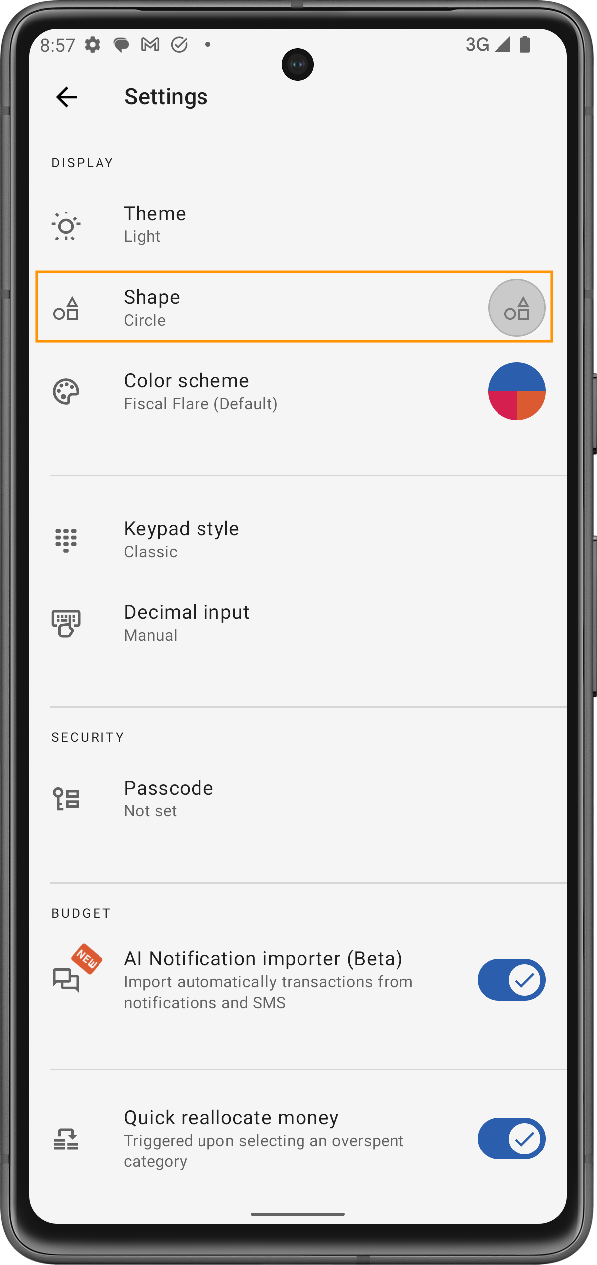 L'application vous offre la possibilité de changer la forme de vos icônes, ce qui vous permet de personnaliser votre expérience jusqu'aux moindres détails. Choisir une forme différente ajoute non seulement une touche personnelle, mais rend également la navigation dans l'application plus attrayante visuellement. Ces formes s'appliqueront à divers éléments de l'application, y compris les montants.
