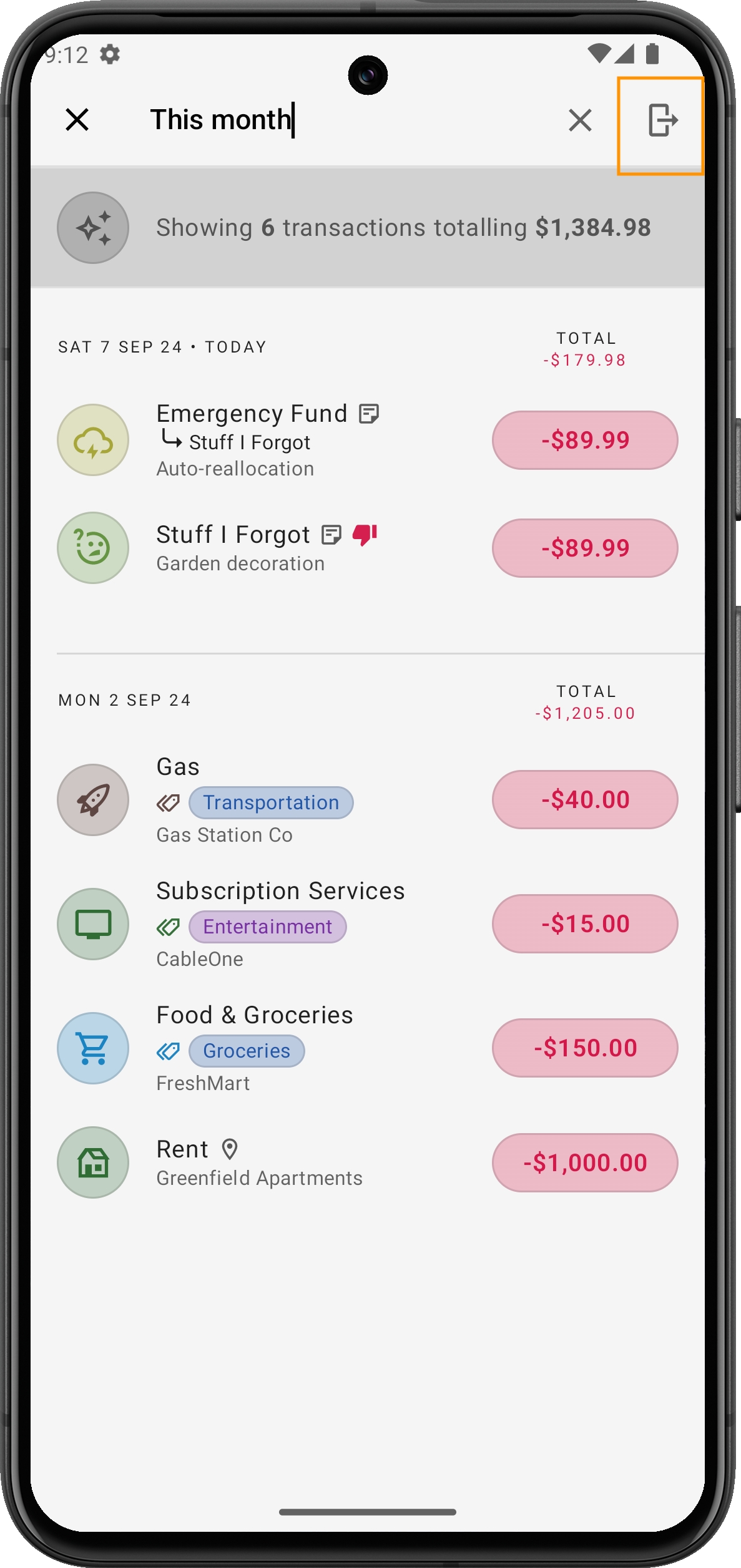 L'exportation de transactions ne se limite pas aux recherches intelligentes. Vous pouvez exporter des données dans différentes sections de l'application, telles que :