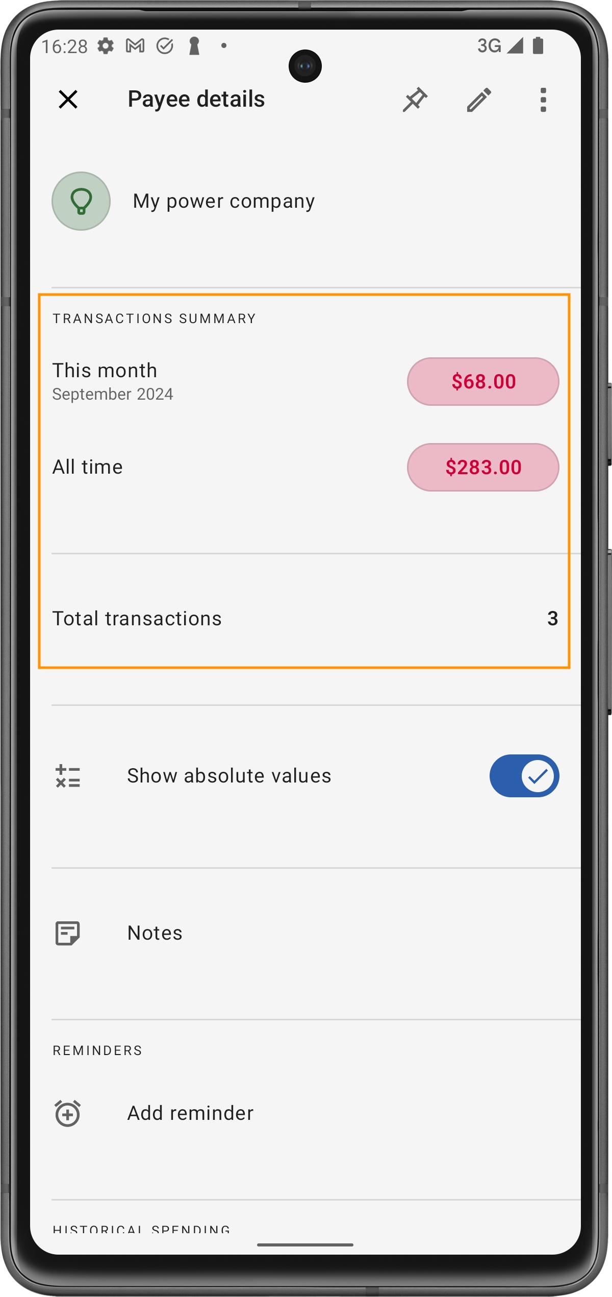 Rappels : Vous pouvez ajouter des rappels directement depuis la vue détaillée du bénéficiaire. Par exemple, si vous devez payer votre facture d'électricité chaque mois, vous pouvez définir un rappel pour vous alerter avant la date d'échéance, garantissant que vous ne manquerez jamais un paiement. Cette fonctionnalité vous aide à rester à jour avec vos engagements financiers sans effort.