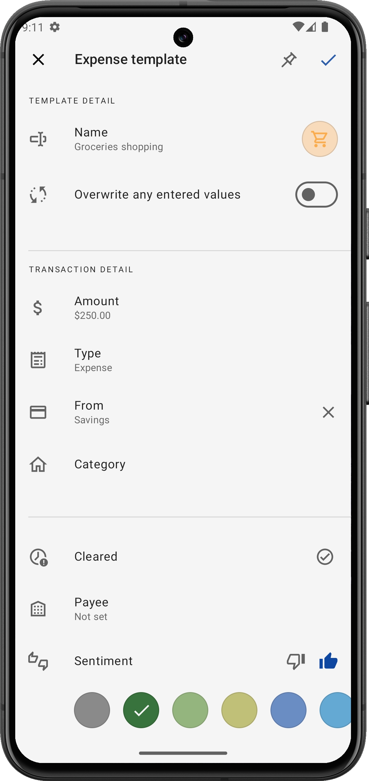 Courses alimentaires : Créez un modèle pour votre budget habituel de courses. Une fois configuré, vous pouvez simplement sélectionner le modèle à chaque fois que vous faites vos courses, sans avoir à ressaisir les détails.
