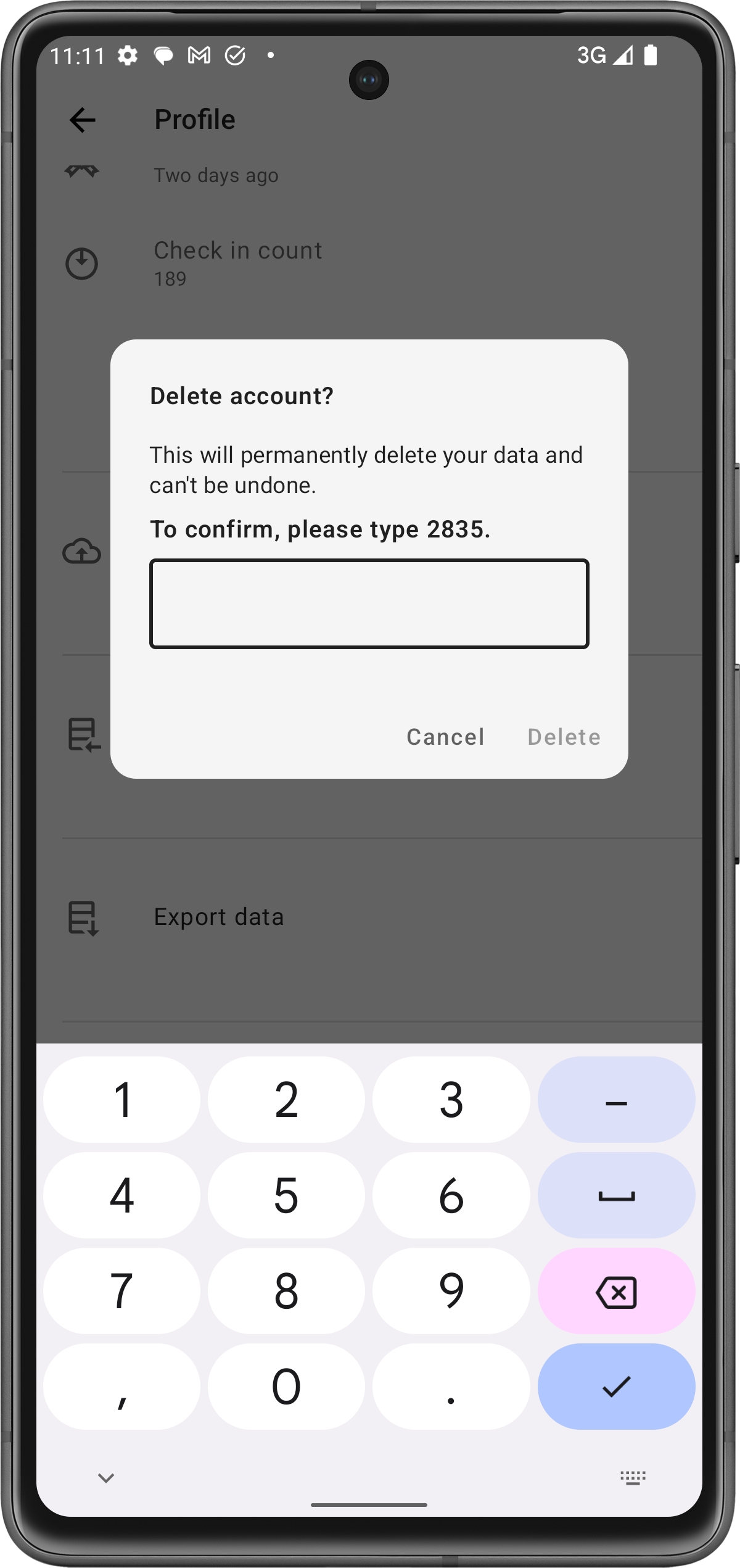 Pour confirmer, il vous sera demandé de taper un code spécifique (par exemple, "2835") dans le champ fourni.