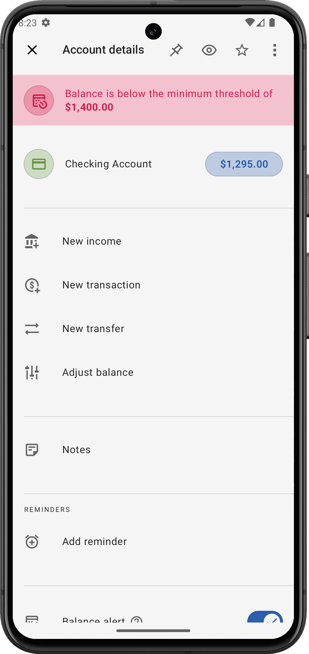 Come Funziona: Imposta un importo specifico di saldo sotto il quale non vuoi scendere. Quando il tuo saldo si avvicina o scende sotto tale importo, l'app ti invierà un avviso, mantenendoti informato sulla tua situazione finanziaria.