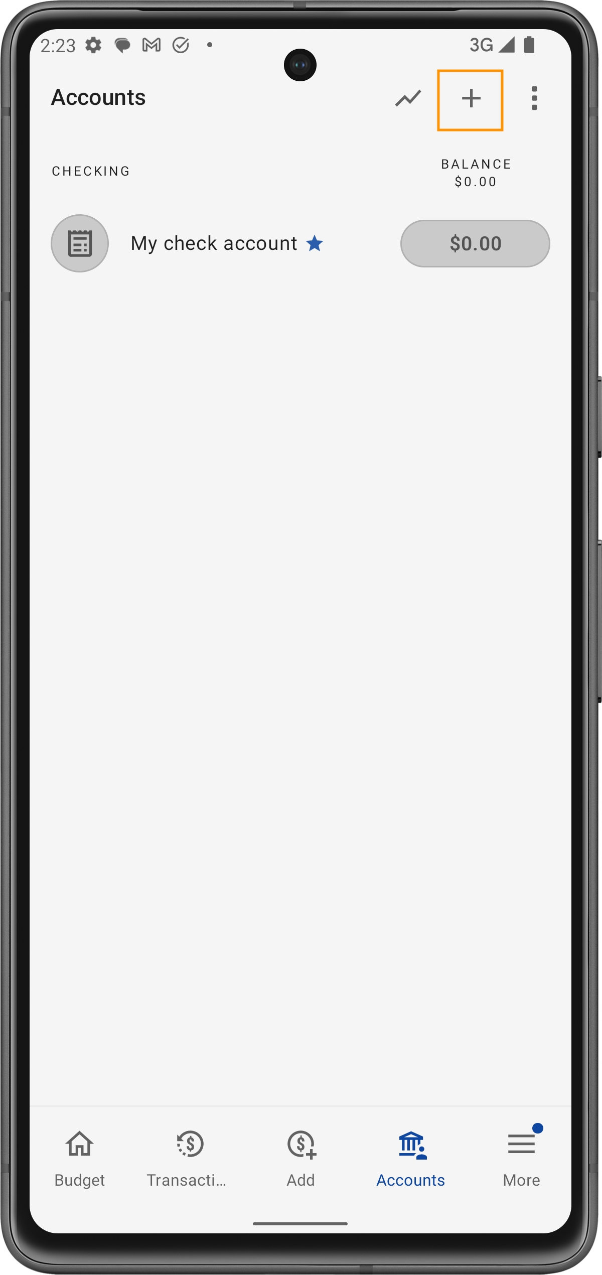 Vai alla scheda Conti: Tocca "Aggiungi nuovo conto" nell'angolo in alto a destra.