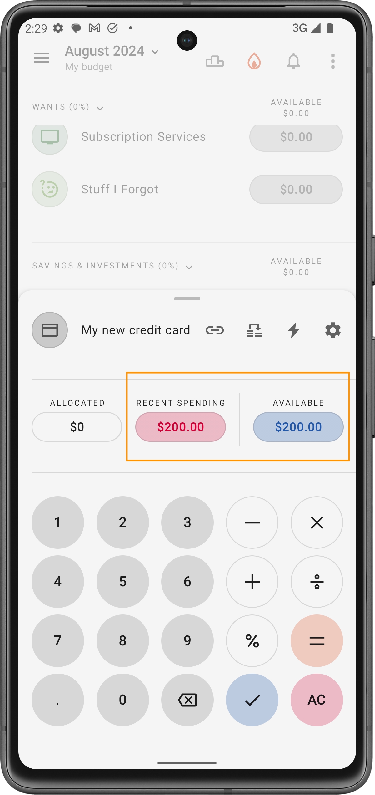 Questo processo garantisce che tu non conti il denaro due volte: prima nella categoria di spesa e poi nella categoria di pagamento. Il denaro disponibile rappresenta quanto è presente per il prossimo rimborso della carta di credito.