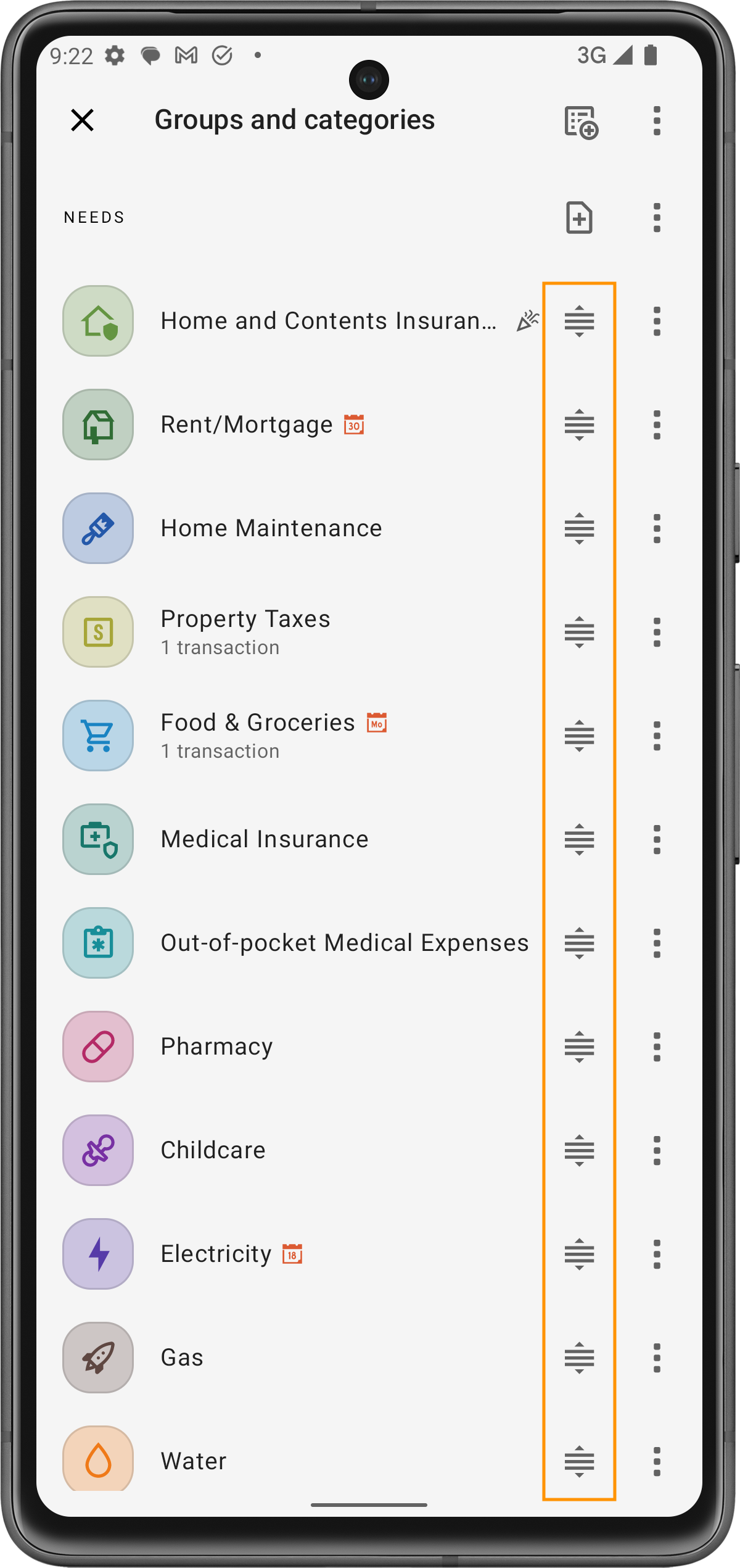 Questa funzione è utile per dare priorità alle categorie in modo che riflettano le tue abitudini di spesa o il focus del tuo budget.