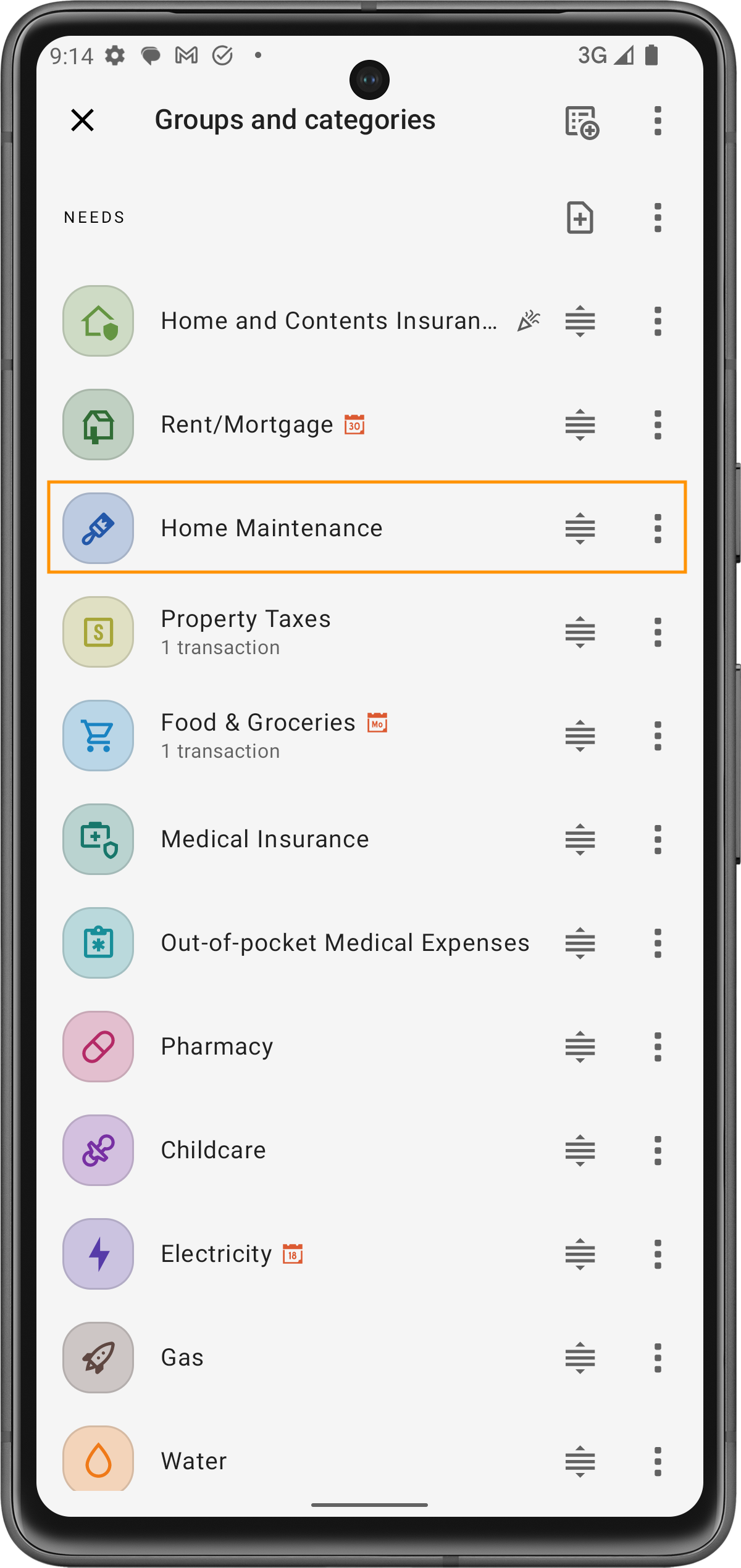Trova la categoria che desideri modificare e tocca il menu a tre puntini accanto ad essa.