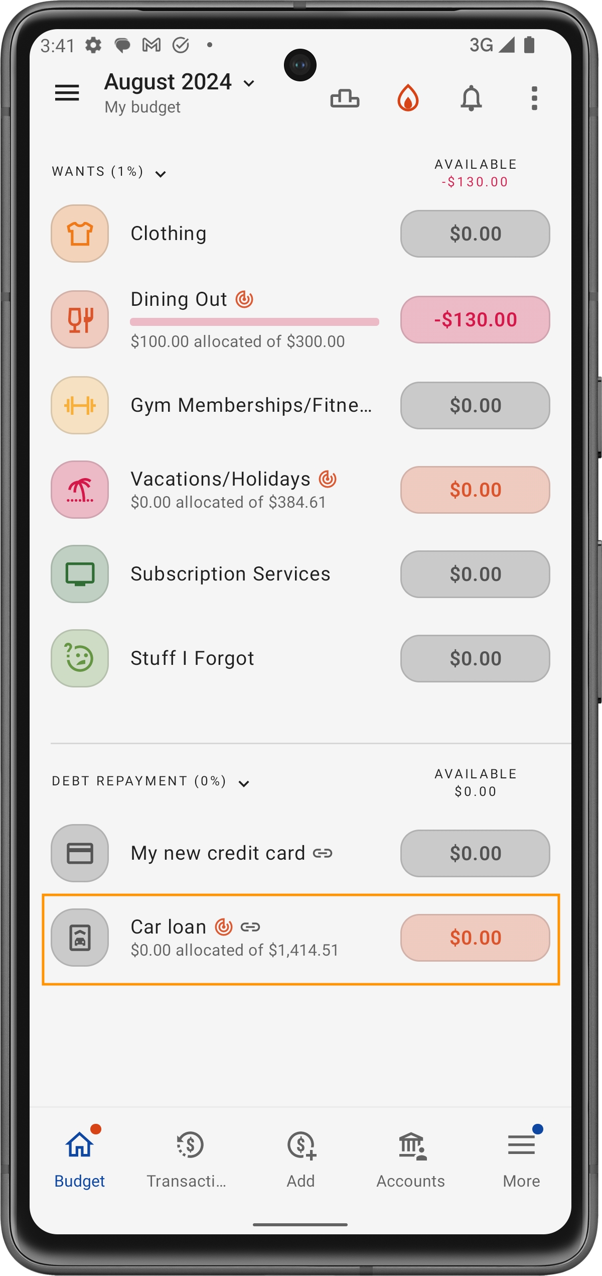 Allocare i Fondi alla Categoria di Pagamento: Ogni mese, assicurati di allocare i fondi necessari alla categoria di pagamento del prestito creata durante la configurazione. Questo garantisce che, quando è il momento di effettuare il pagamento, i fondi siano pronti.
