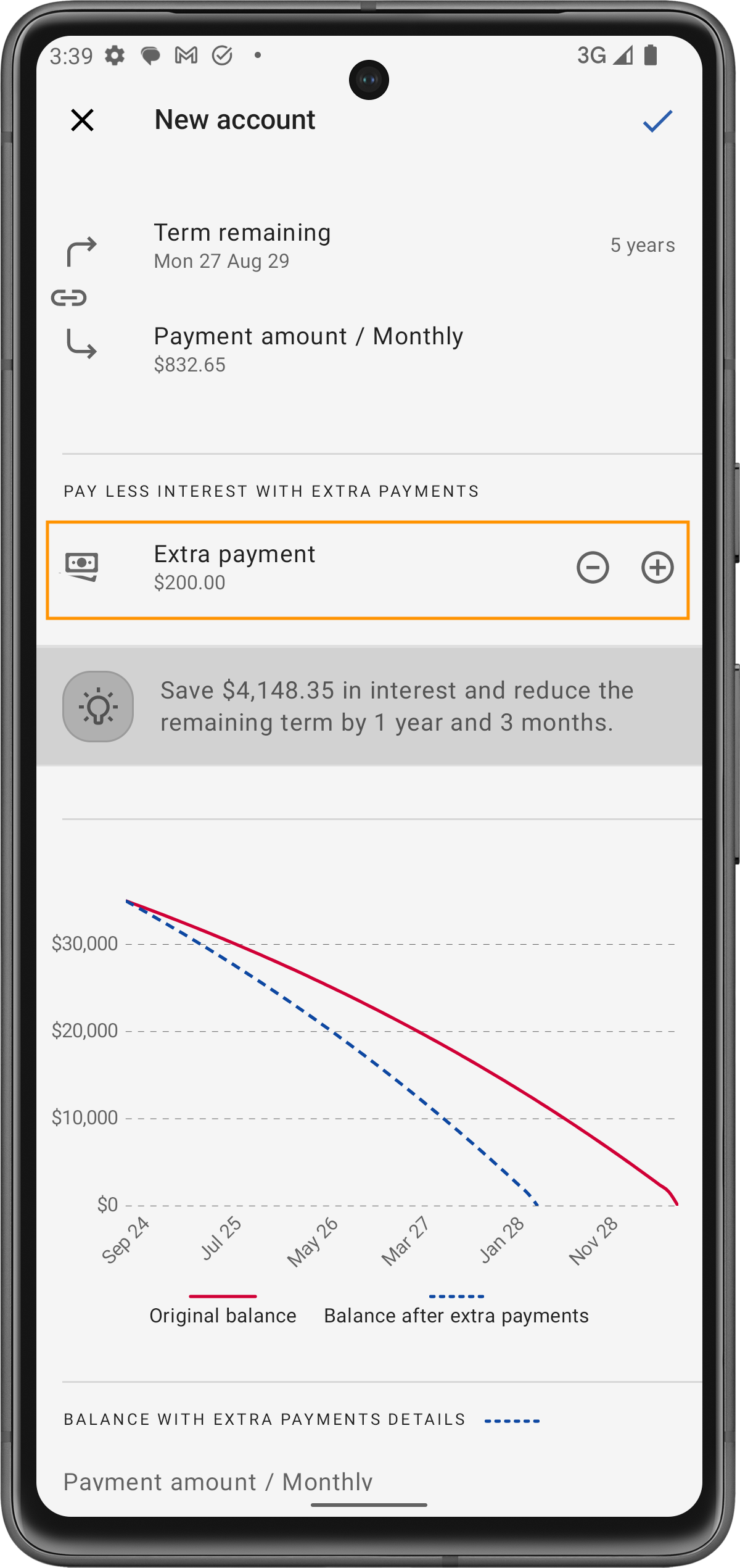 Una volta impostato l'account del prestito, l'app offre strumenti avanzati per aiutarti a risparmiare sugli interessi e ripagare il prestito più velocemente.