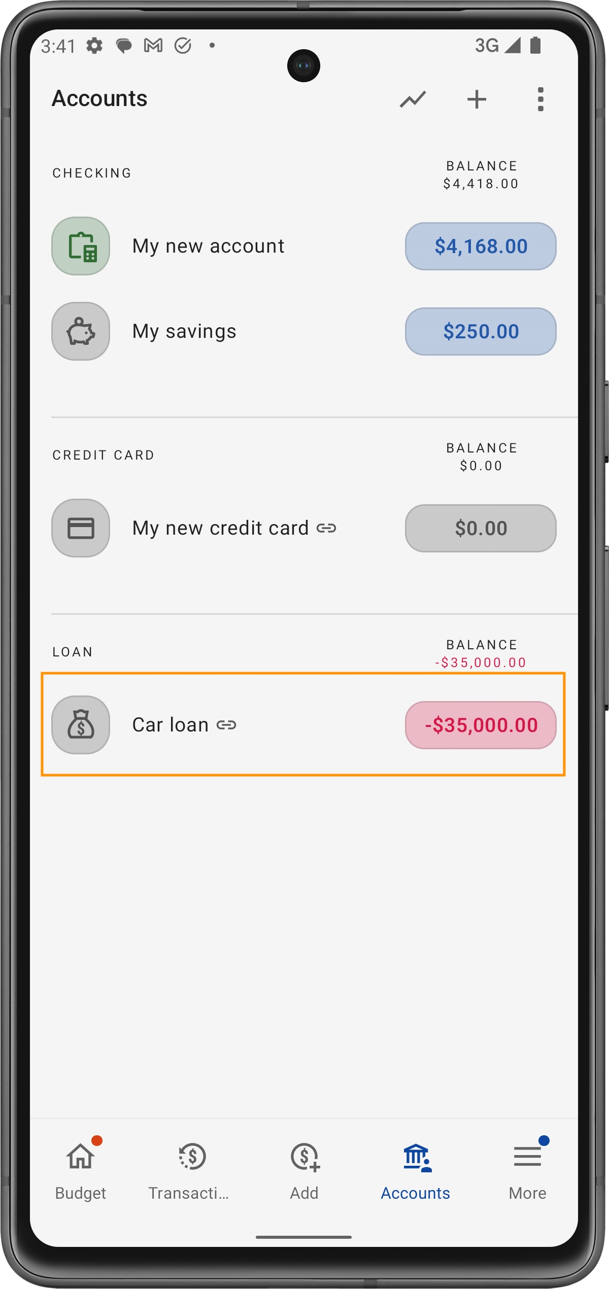 Categoria Collegata: Quando imposti un account di prestito, l'app crea automaticamente una categoria collegata per i tuoi pagamenti (es. "Pagamenti Prestito Auto"). Questa categoria viene utilizzata per allocare i fondi che hai destinato al prestito.