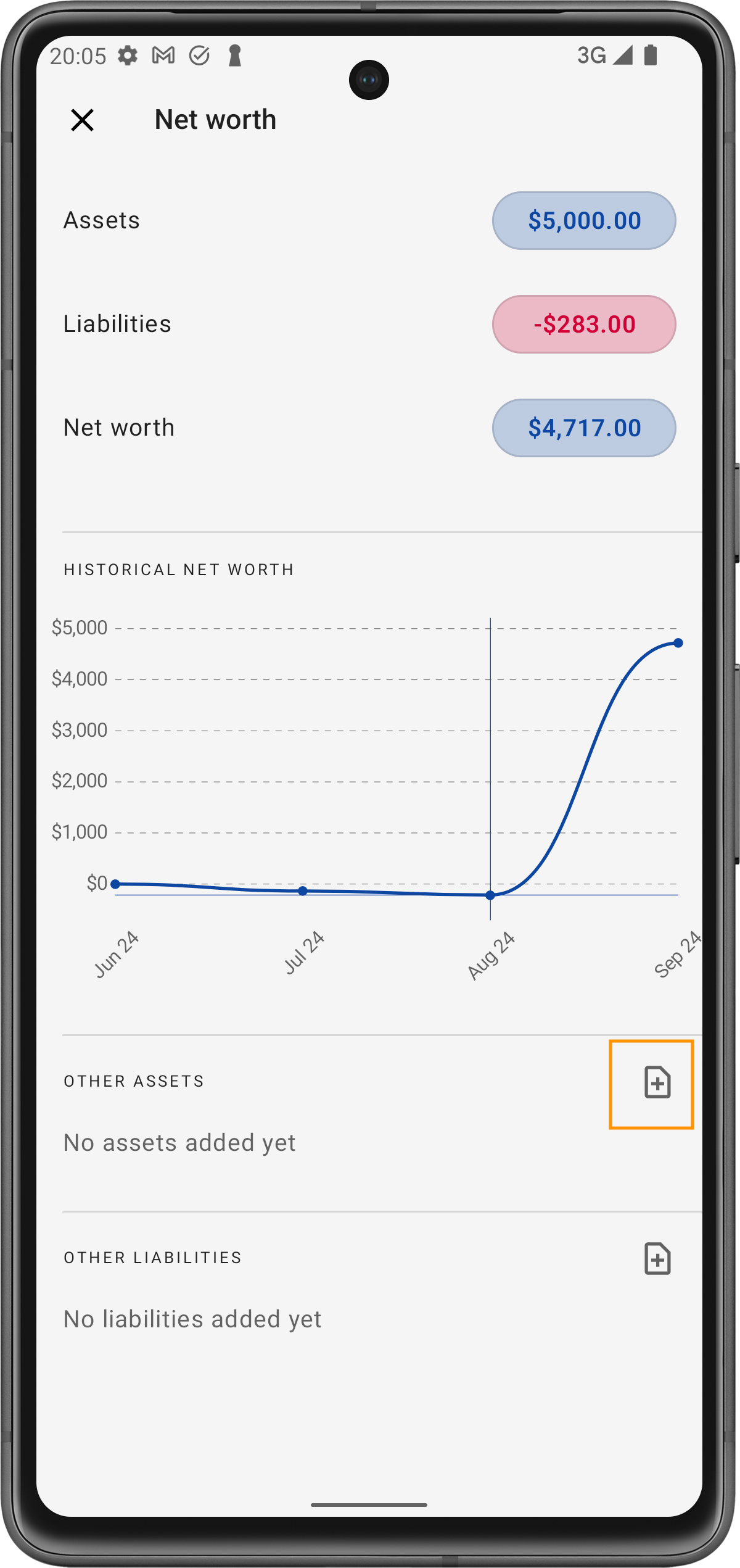 L'app aggiornerà automaticamente il tuo patrimonio netto e mostrerà i cambiamenti nel tempo con un grafico, aiutandoti a monitorare i tuoi progressi finanziari.