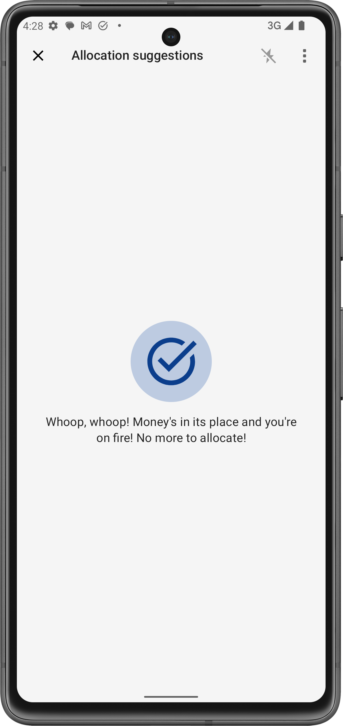 Ora, il totale di 3.500 € è stato completamente allocato, il che significa che ogni euro è stato assegnato a uno scopo. Man mano che altre entrate arrivano durante il mese, verranno aggiunte alla tua "Allocazione in sospeso", pronte per essere distribuite.