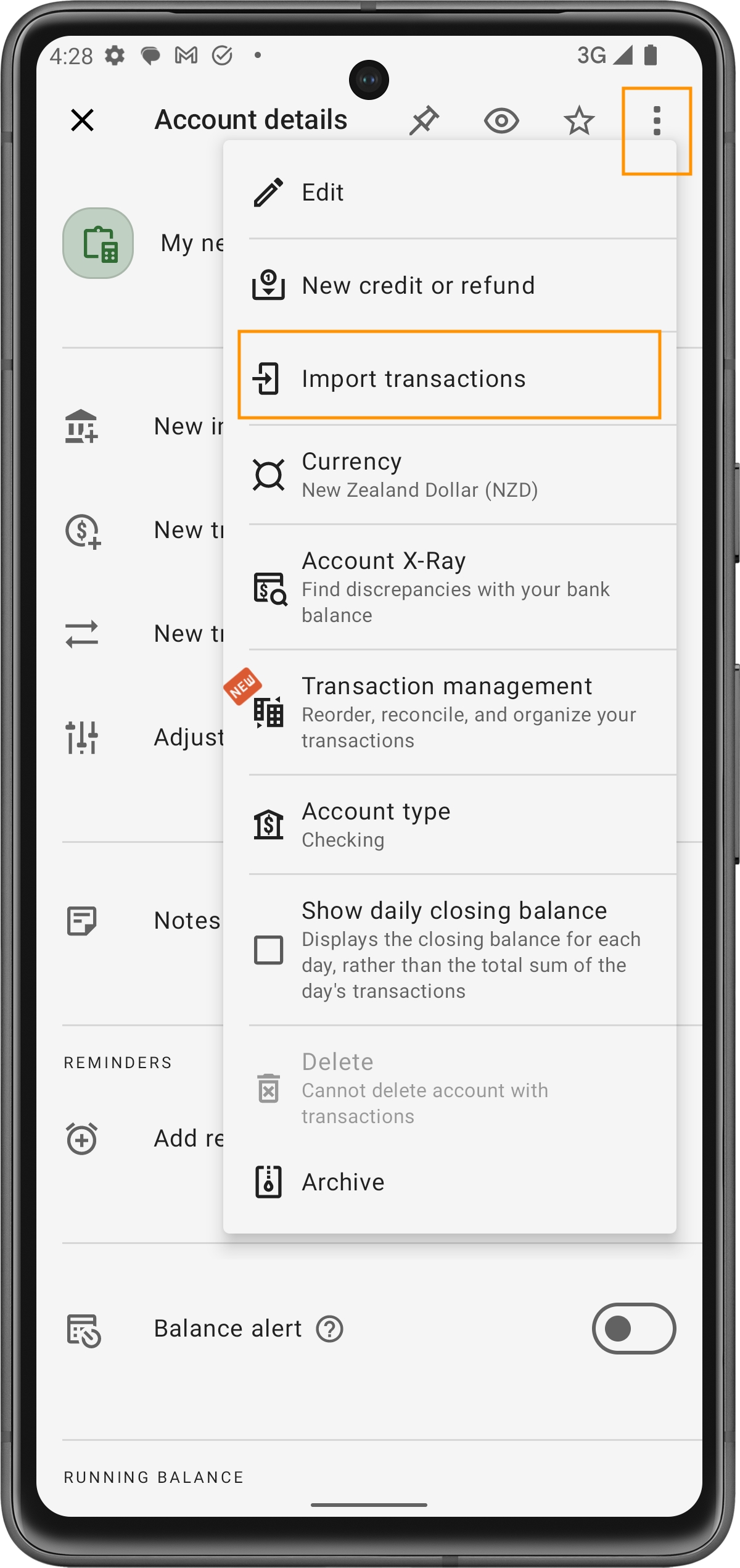 Vai alla schermata Dettagli del conto e seleziona il menu con i tre puntini nell'angolo in alto a destra.