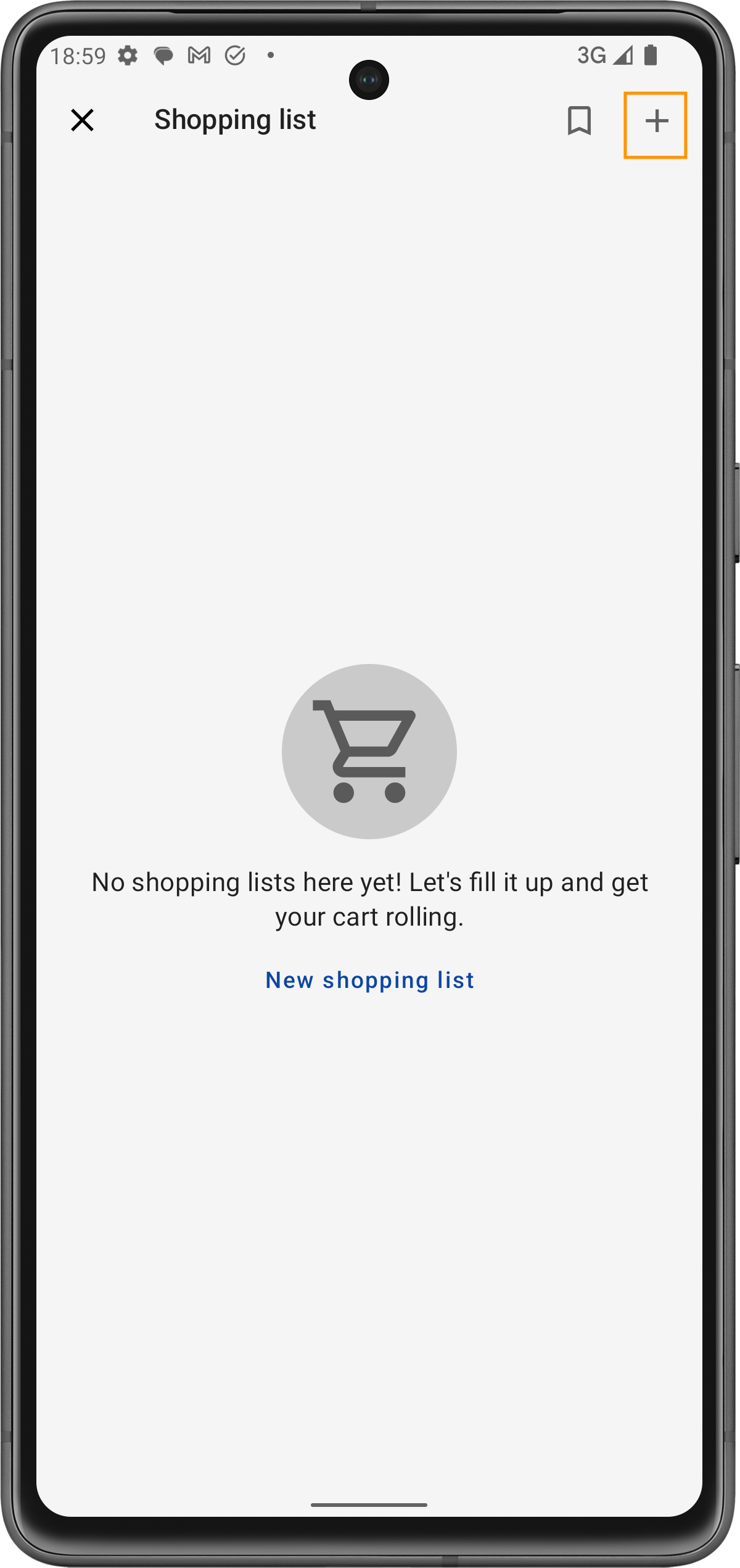 Se non hai ancora liste della spesa, vedrai una schermata che ti invita a crearne una nuova.