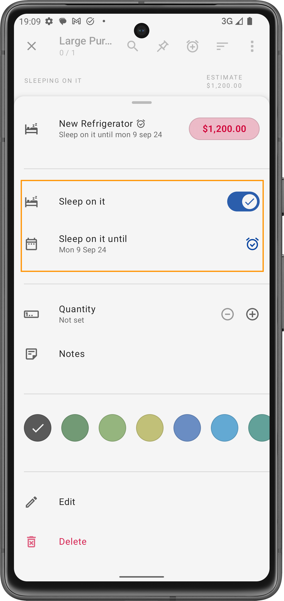 Attiva Ripensaci e imposta una data di promemoria per rivedere l'acquisto.