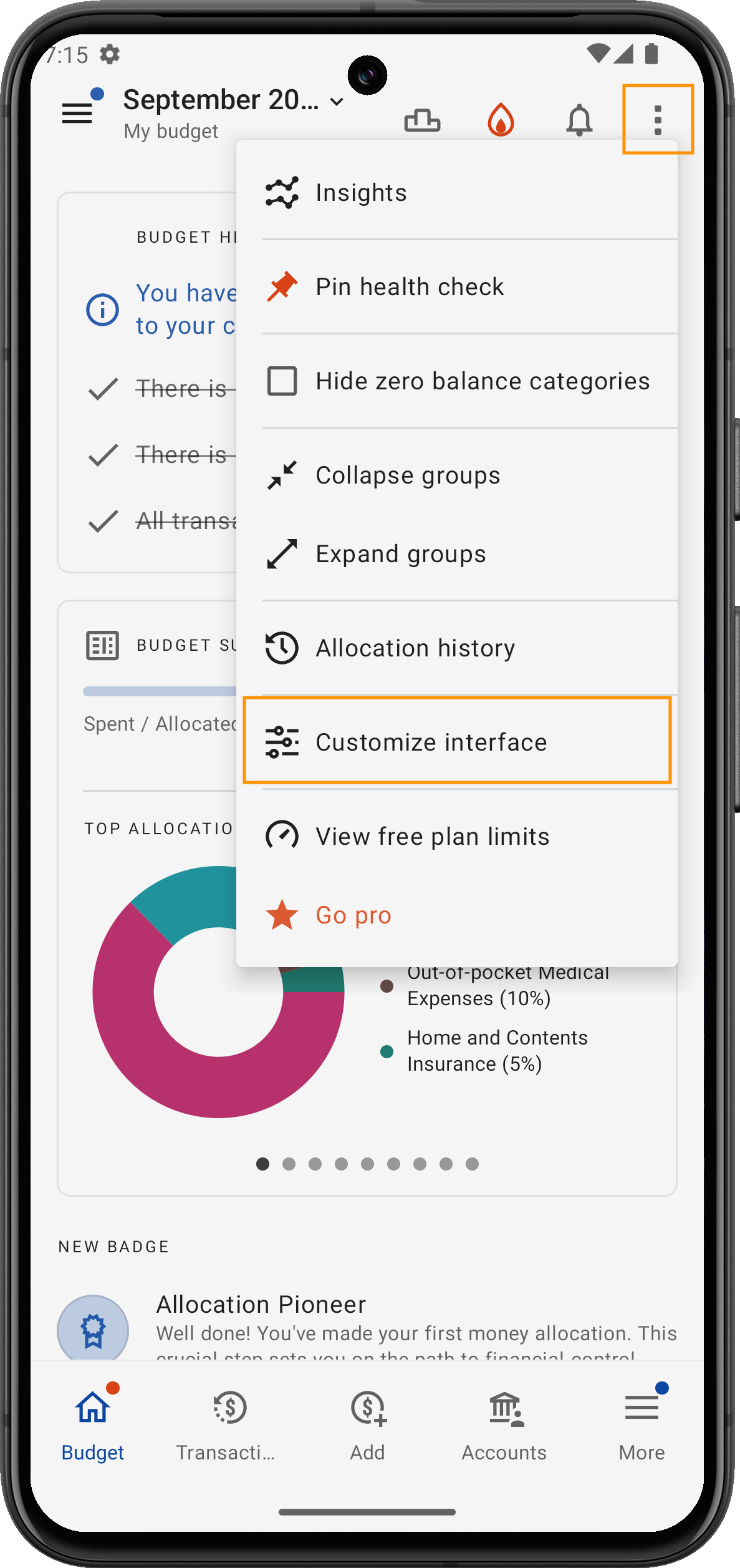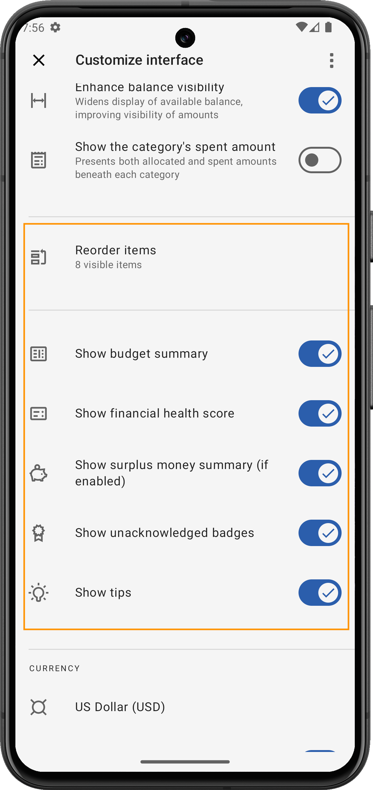 Con queste opzioni di personalizzazione, Beyond Budget ti assicura il pieno controllo sulla tua dashboard finanziaria. Abilitando e disponendo solo gli elementi che ti servono, puoi semplificare la tua esperienza, rendendo il budgeting più veloce e intuitivo.