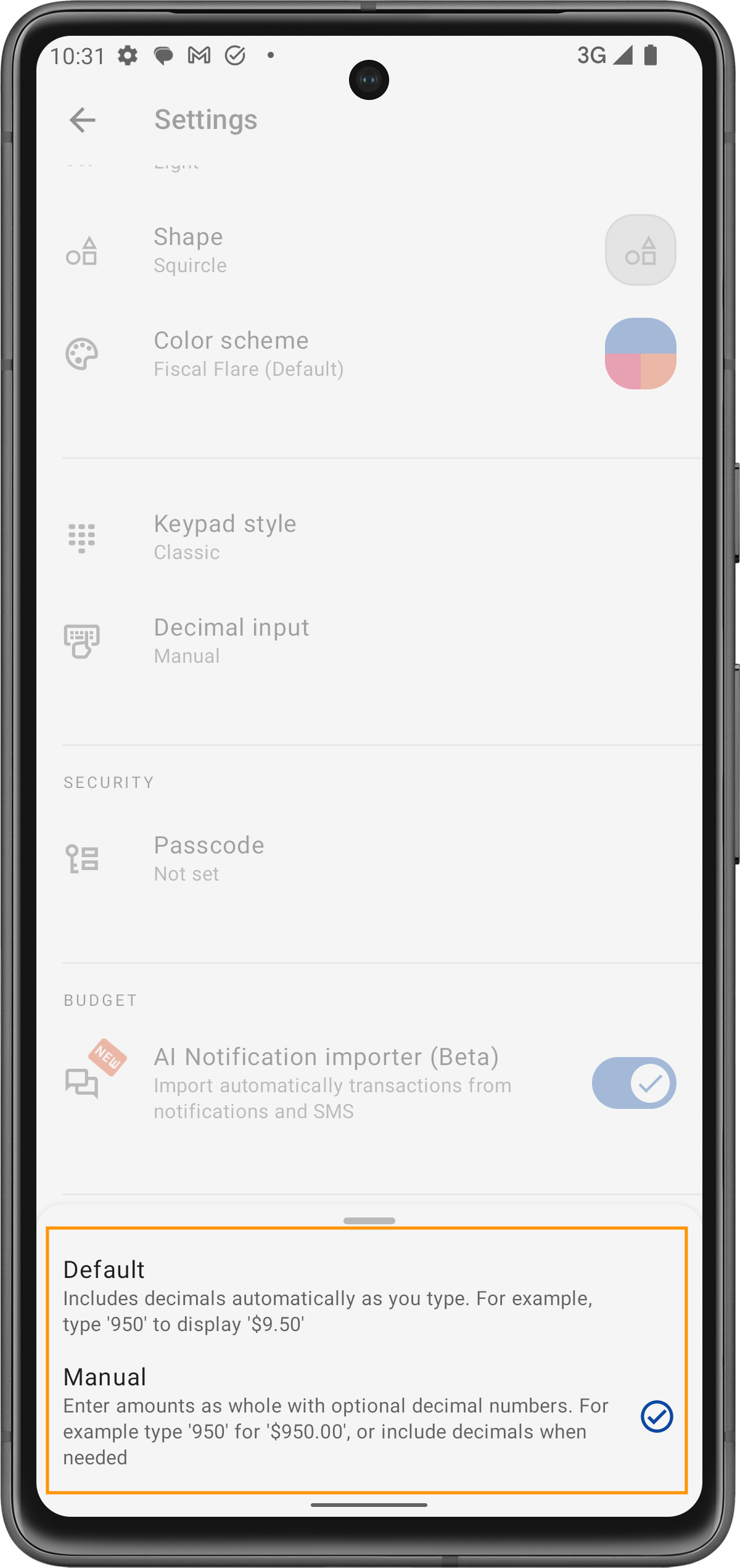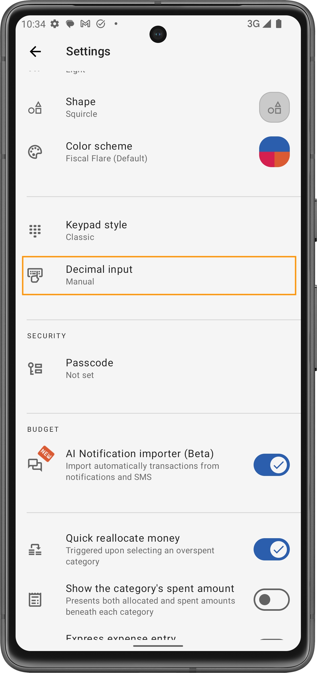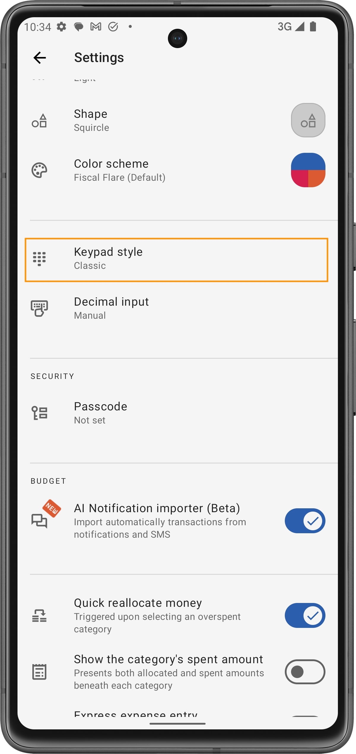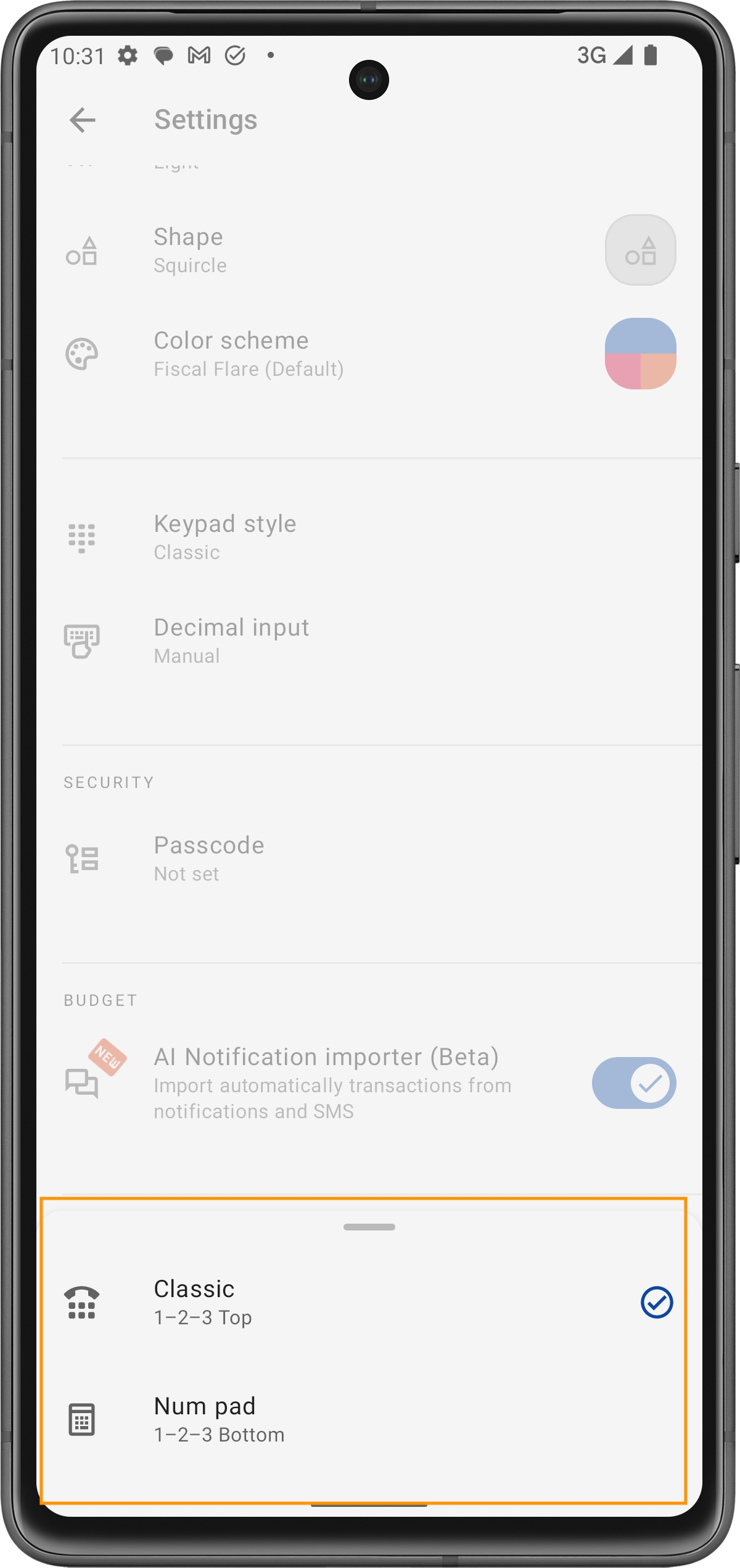 L'app offre varie opzioni di personalizzazione del tastierino numerico per adattarsi alle tue preferenze quando inserisci importi. Puoi scegliere tra diversi stili di tastierino e metodi di input decimali per rendere l'inserimento dei dati più intuitivo e in linea con le tue abitudini.