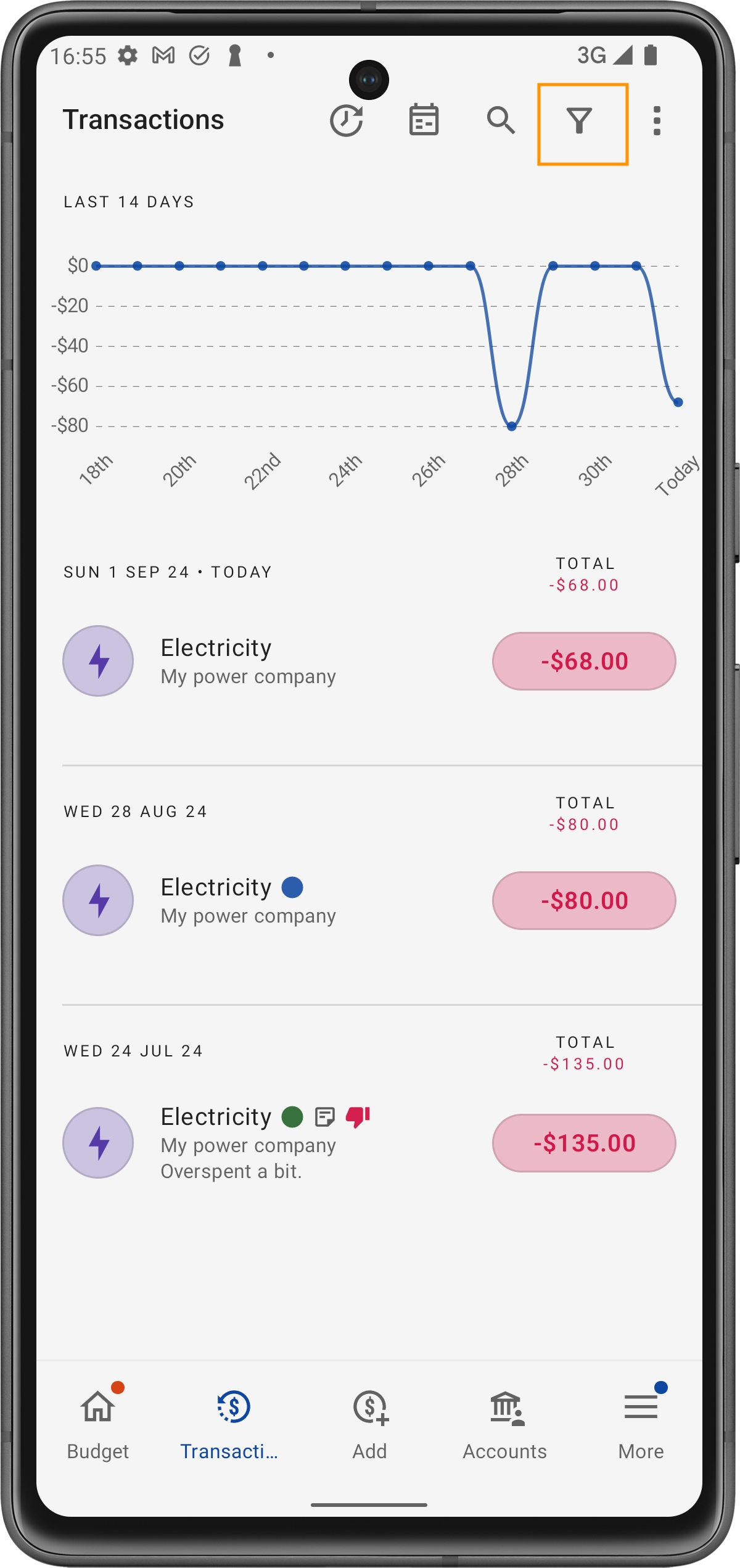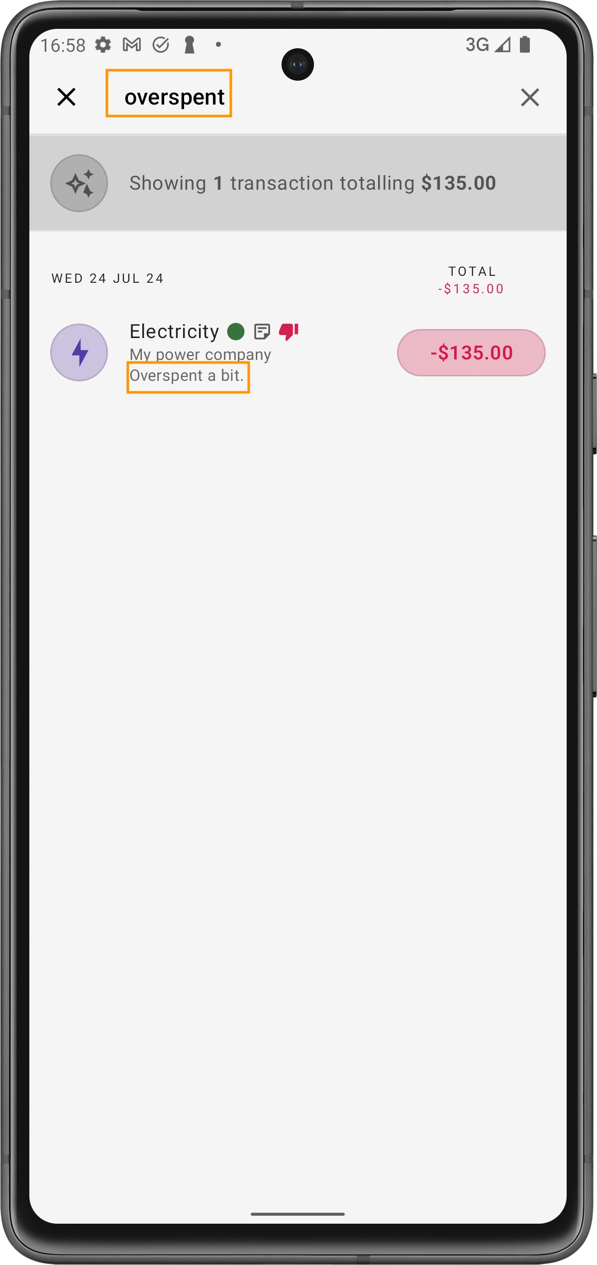 Le note sono un modo utile per aggiungere contesto a qualsiasi transazione. Che si tratti di un promemoria sul motivo per cui hai effettuato un acquisto, dettagli su uno sconto ricevuto o altre informazioni importanti, le note ti aiutano a mantenere tutto organizzato. Usando Smart Search, le note allegate alle transazioni forniscono chiarezza immediata su voci specifiche, rendendo più facile ricordare i dettagli delle tue spese.