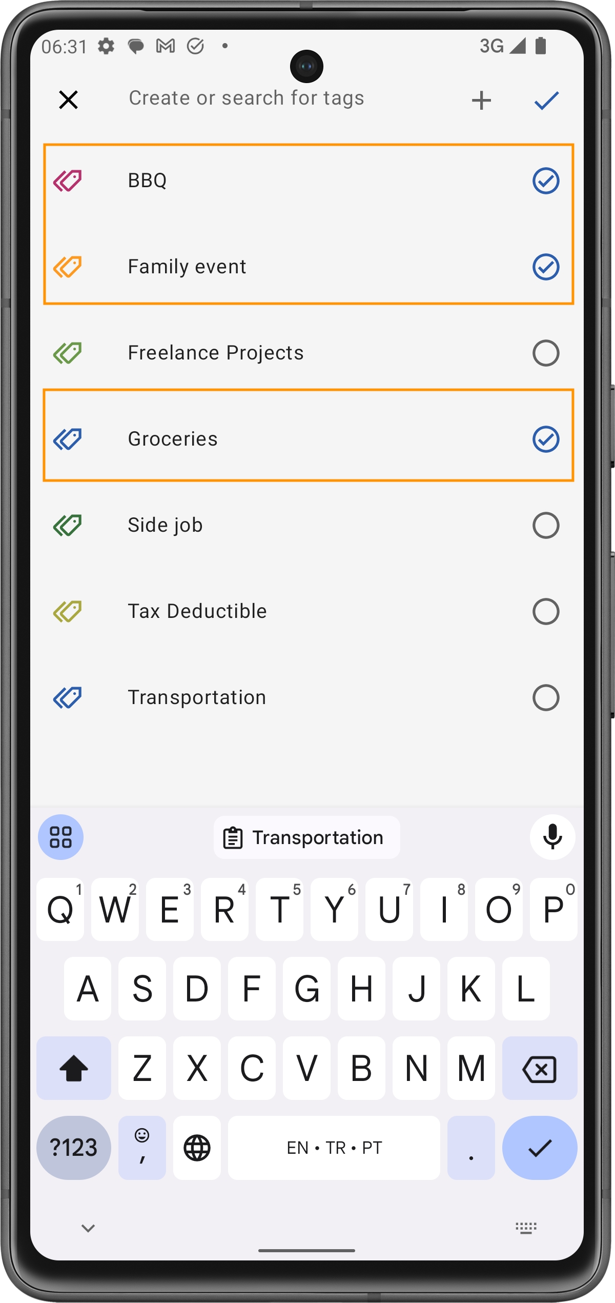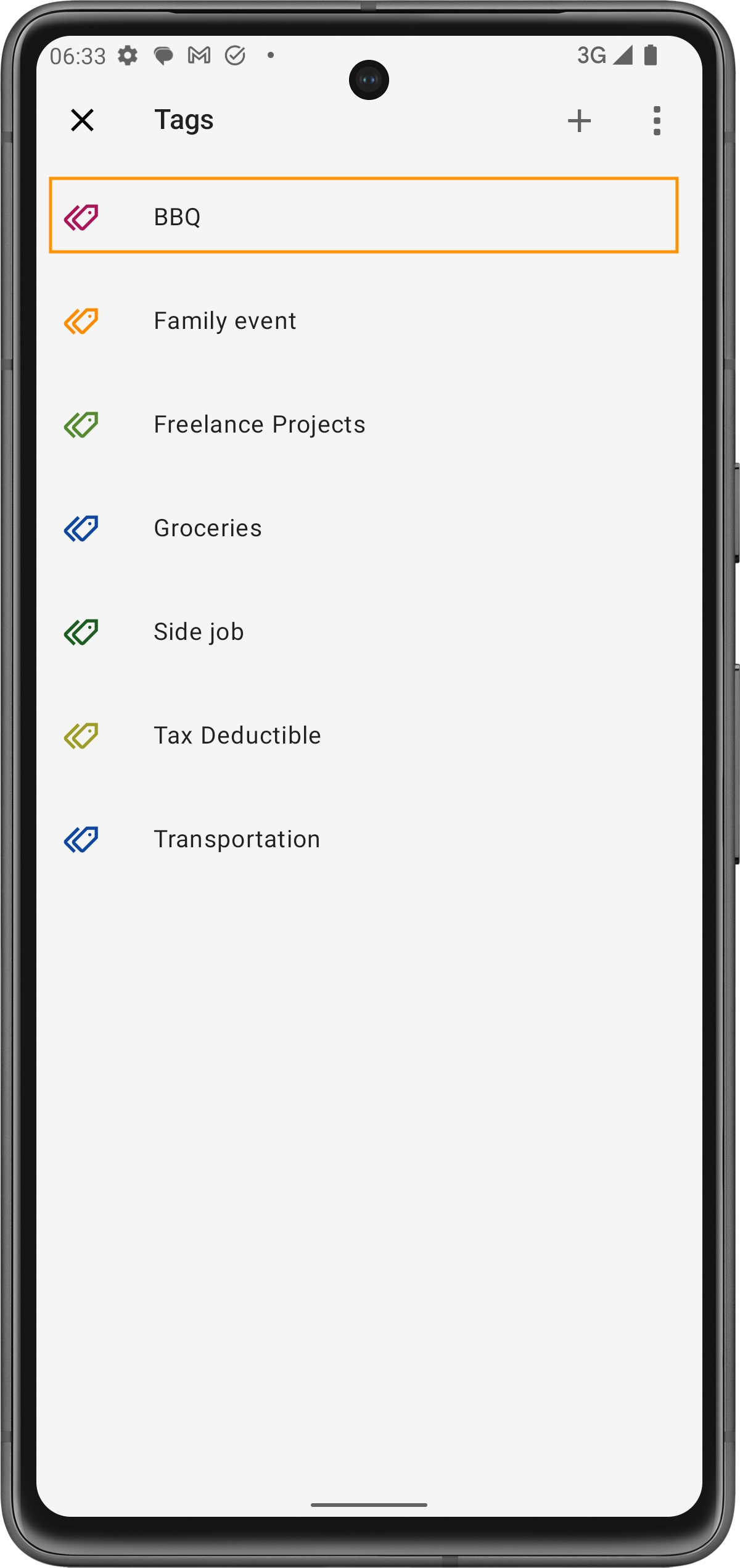 Esempio: Tagga tutti i servizi in abbonamento (es. Netflix, Spotify) con "Abbonamenti" per tenere d'occhio le spese ricorrenti e decidere se annullare o regolare alcuni servizi.