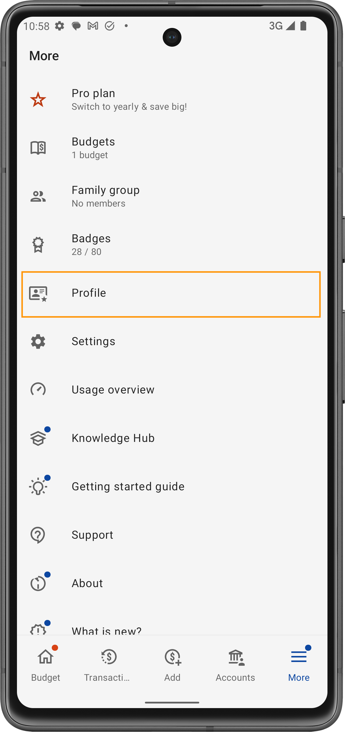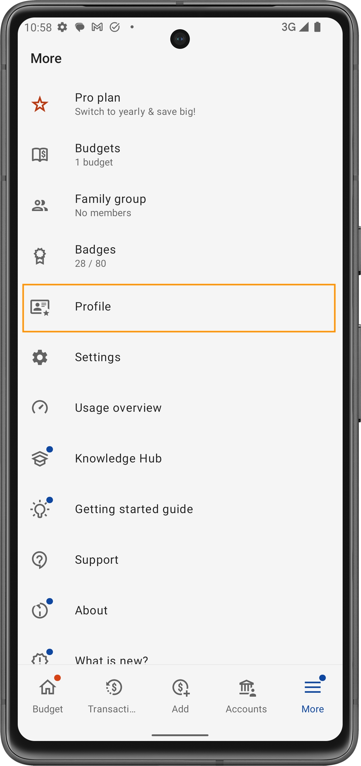 Nel menu, seleziona Profilo per accedere alle impostazioni del tuo profilo.