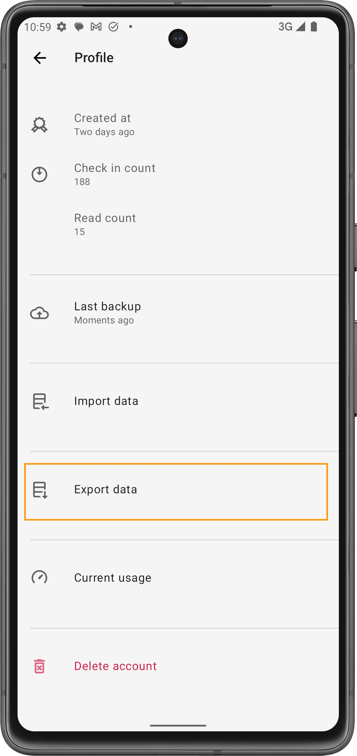 Nella sezione Profilo, scorri verso il basso e tocca Esporta dati.