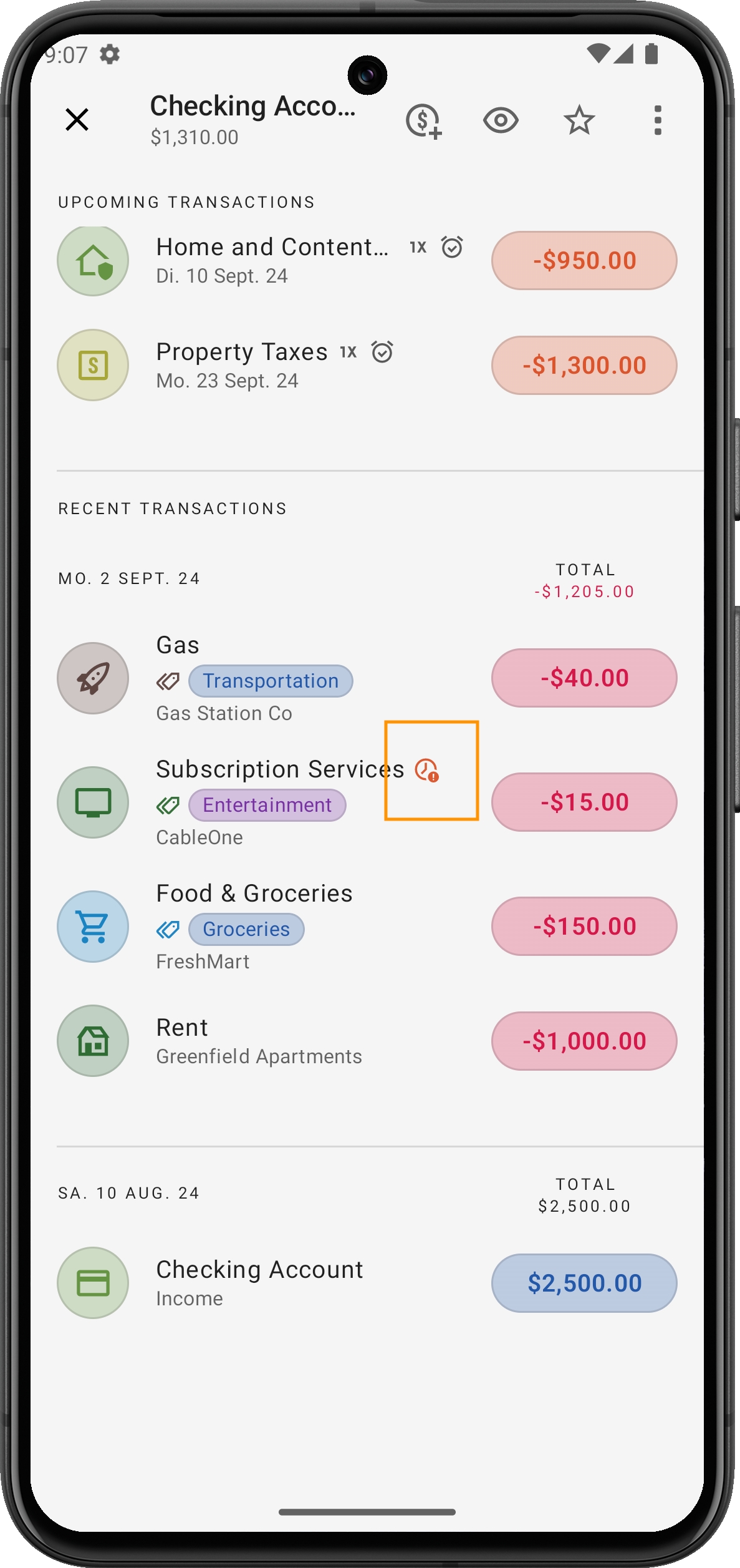 Às vezes, as transações podem estar pendentes ou ainda não totalmente processadas pelo seu banco, resultando no que é chamado de transações "não compensadas". O aplicativo oferece um resumo útil dessas transações na visualização da sua conta, garantindo que você esteja ciente do seu saldo disponível real.
