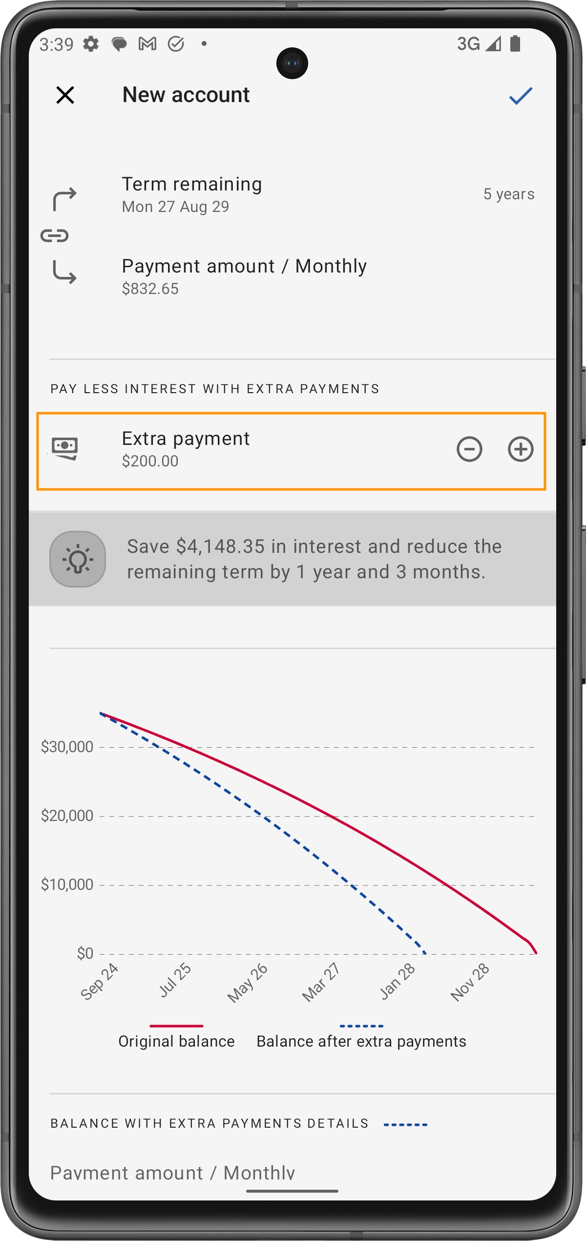 Depois de configurar sua conta de empréstimo, o app oferece ferramentas avançadas para ajudá-lo a economizar nos juros e pagar o empréstimo mais rapidamente.