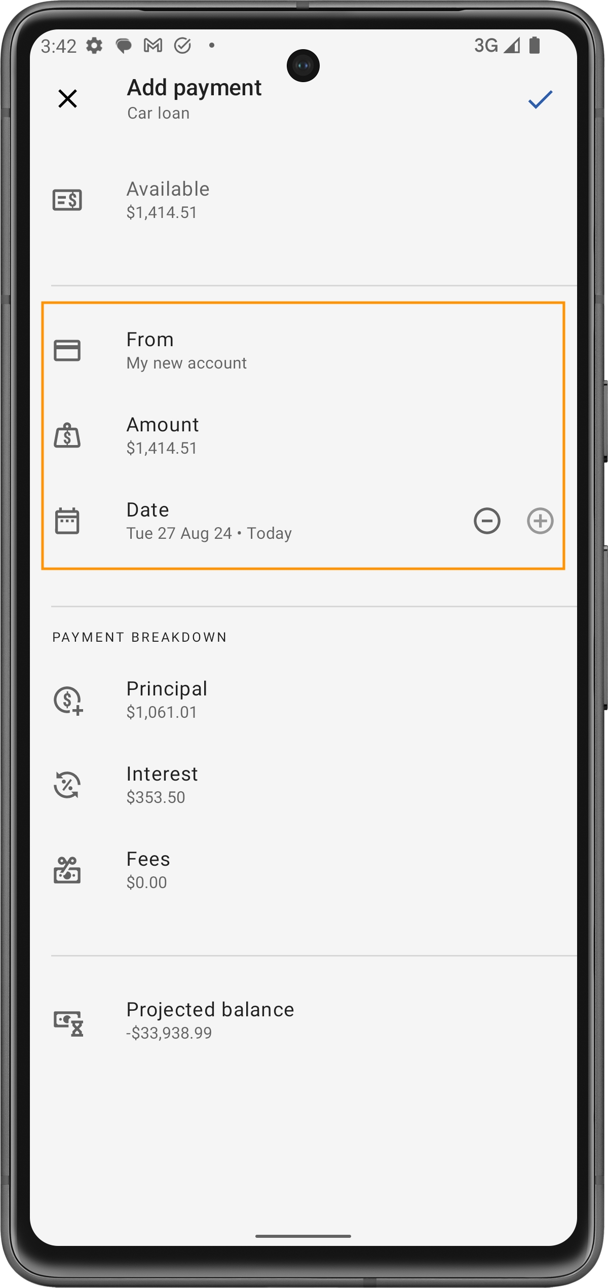 Efetuando o Pagamento: Quando estiver pronto para pagar, acesse sua conta de empréstimo. Você poderá adicionar os detalhes do pagamento, incluindo principal, juros e quaisquer taxas associadas ao pagamento daquele mês. Depois de confirmado, o valor será deduzido da categoria de pagamento vinculada, mantendo seu orçamento em ordem.