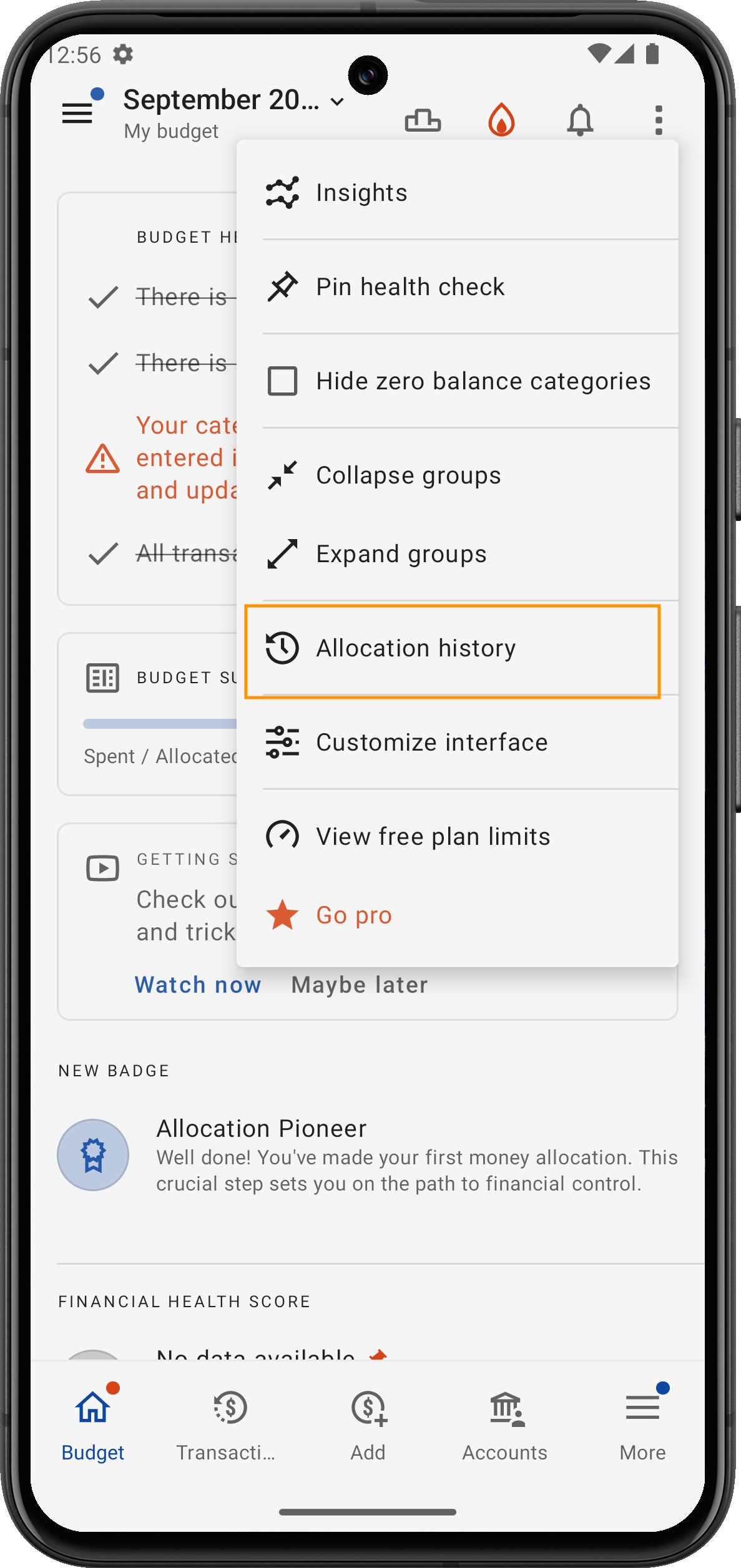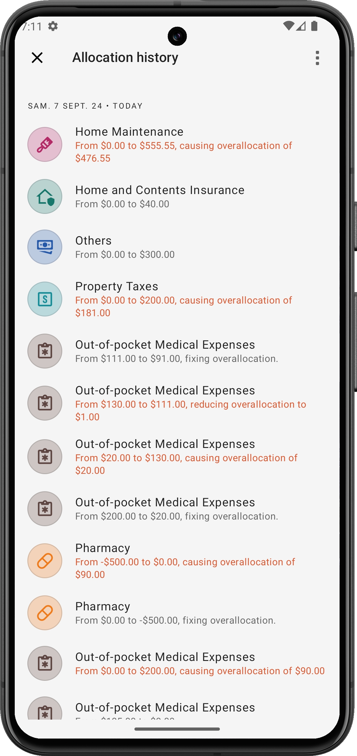 Se o problema de superalocação ocorreu recentemente, você pode acessar o histórico de alocações para ver quais mudanças foram feitas. Esse recurso ajuda a rastrear quaisquer ajustes ou alocações incorretas que possam ter causado o problema, para que você possa fazer as correções necessárias e colocar seu orçamento de volta nos trilhos.