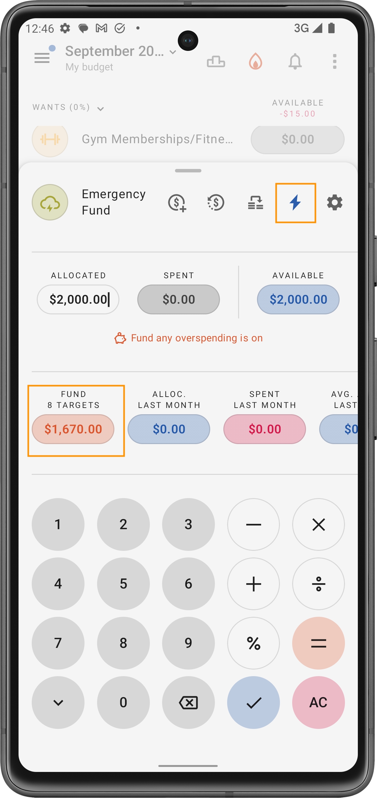 Um dos benefícios imediatos de designar um Fundo Excedente é a capacidade do app de cobrir automaticamente qualquer gasto excessivo em outras categorias. Veja como funciona: