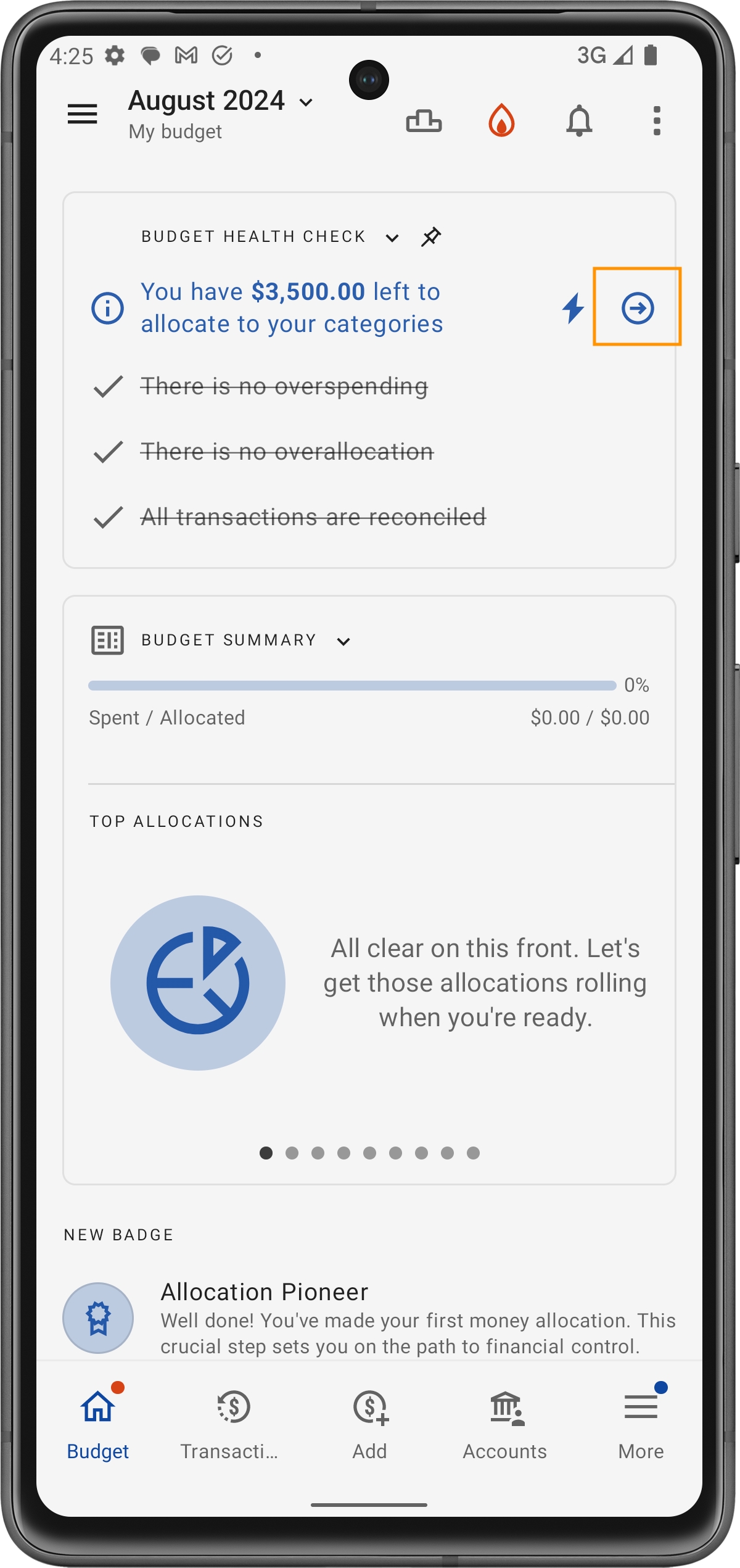 Ao longo do mês, continue monitorando seu orçamento e faça ajustes conforme necessário. Se uma nova renda entrar, ela aparecerá na seção "Alocação Pendente," pronta para ser atribuída a categorias.