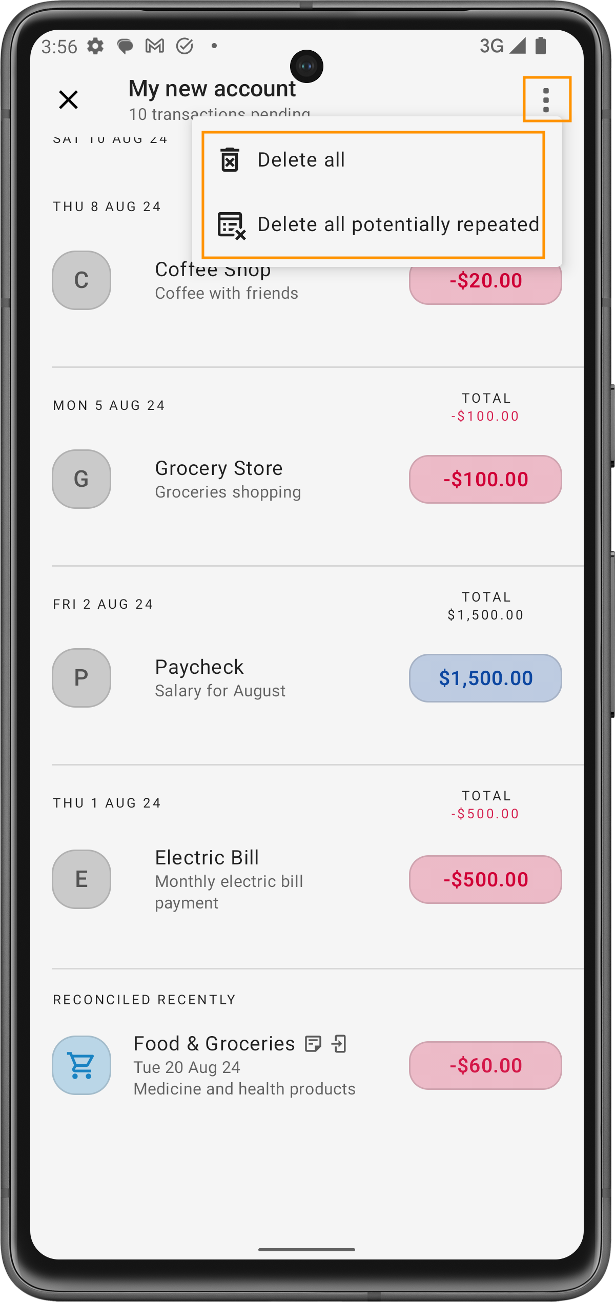 Se você decidir não prosseguir com as transações importadas, pode simplesmente excluir todas as transações não reconciliadas. Isso as removerá da sua conta sem afetar seu orçamento, garantindo que sua configuração financeira permaneça inalterada.